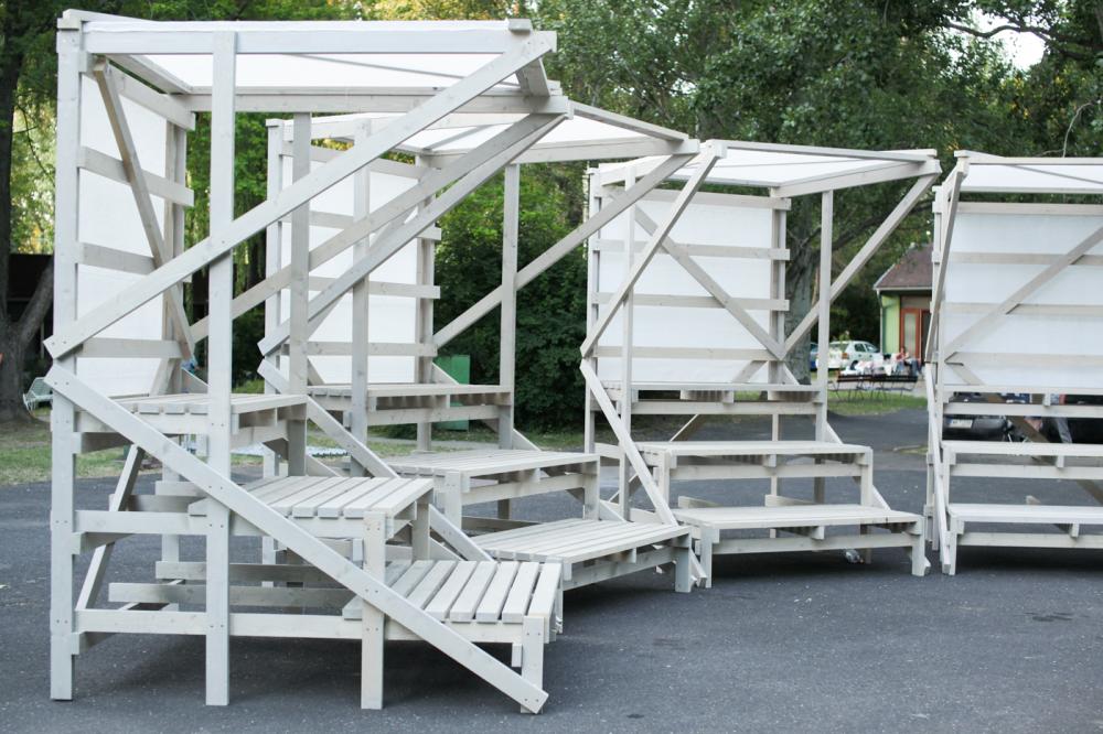 A Szent István Egyetem tájépítészei a strandolókat és horgászokat elválasztó térbeli és közösségi szakadékot hidalták át egy különleges hal-lessel. A két világ határán álló, a szélfútta nádasra emlékeztető épületbe a strand felől lehet bemenni, belsejéből pedig a nádasra lát a betérő, így az elnagyolt panoráma helyett egy sokkal intimebb tájélményben részesülhet. Idén ezt a csapatot ítélte a zsűri a legjobbnak. A Moholy-Nagy Művészeti Egyetem csapata a csopaki borút mentén épített egy mazsolaszárító által inspirált pihenőhelyet. A Leier cég által forgalmazott Durisol farost paneleiből készített installáció egy szőlővel teli domboldal alján található, az árnyékoló pavilon beljeséből egyedülálló kilátás nyílik a Balatonra. A Budapesti Metropolitan Egyetem diákjai a csopaki vízimalom kertjében egy már meglévő építményhez, a sütödéhez toldottak hozzá egy kisméretű teraszt, mely a helyiek által gyakran látogatott kertben sütögetések, baráti összejövetelek helyszíne lehet, a csapat pedig némi kobaltkék festék segítségével létrehozta a régió első szabadtéri dizájn-sütőkemencéjét is. Az Ybl Miklós Építéstudományi Karról érkező hallgatók a Balaton egyik legnépszerűbb kertmozijában építkeztek: a vászon mögé elhelyezett vizuális kirekesztőfal egyrészt az elhaladó autók fényszóróitól óvja a nézőteret, másrészt biciklitárolóként és szeméttárolóként is szolgál.