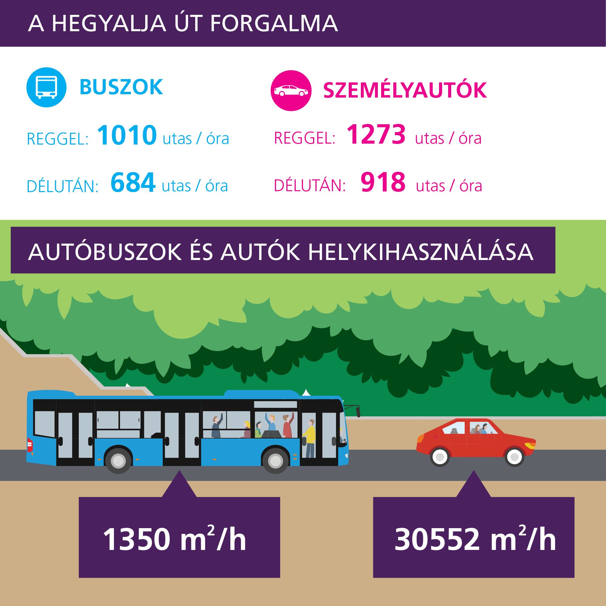 „A Hegyalja úton csúcsidőben a személygépkocsik hússzor akkora területet foglalnak el, mint a közösségi közlekedés járművei” – írta a napokban a BKK közösségi oldala, hozzátéve: Gondoltad volna, hogy eközben az erre utazók épphogy fele ül csak autóban?