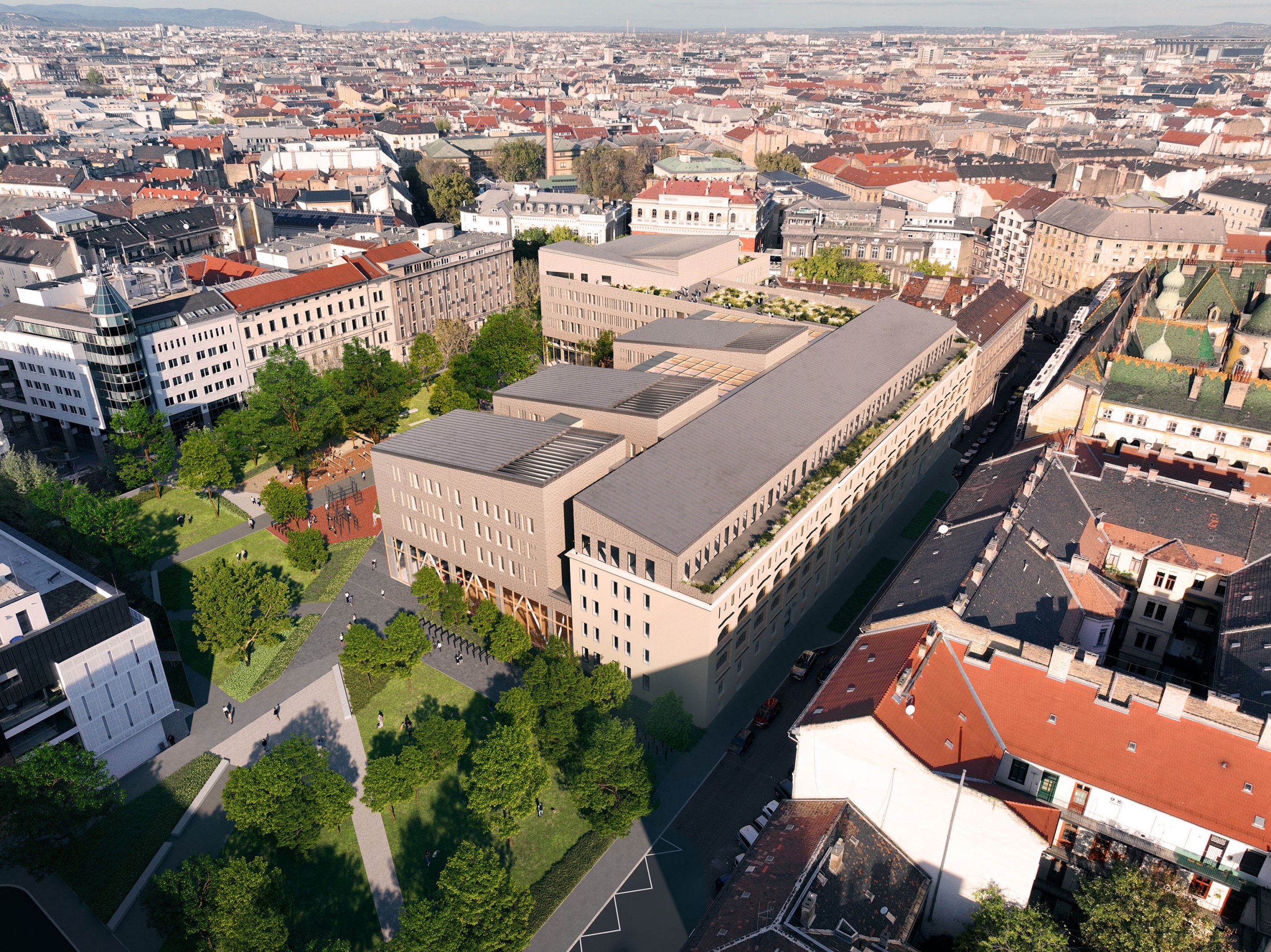 Egyfelől az épület nyit a város felé, invitál és befogad, bérbe adható és együtt használható tereket kínál, másfelől jól lehatárolható, védett, oktató terek alakulnak ki, biztonságos tanulóterek, a közösségteremtés színterei. Ez a fajta diverz rétegzettség figyelhető meg a környező épületeken is, az illeszkedés történeti és gondolati rétegei egymást kell, hogy erősítsék. Ide nem lehet divattrendek látványkalandjait, de nem lehet ingerszegény, sorozatgyártás építészeti termékét sem letenni. A szomszédos és meglévő épületek eszmei és ahol lehet, fizikai folytonosságát fenntartva kell új életet teremteni, mely táplálva kihat a tágabb környezetre is.