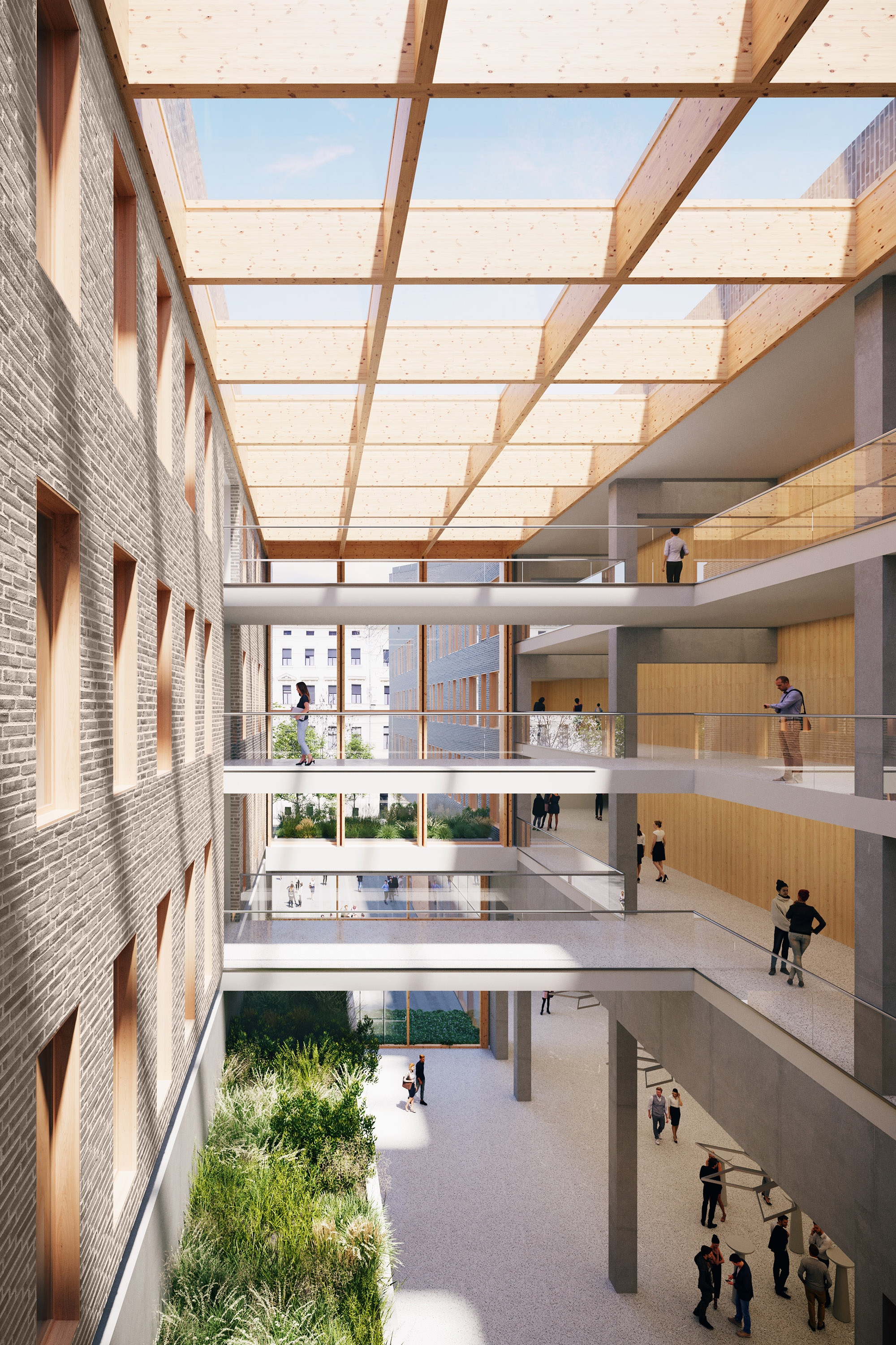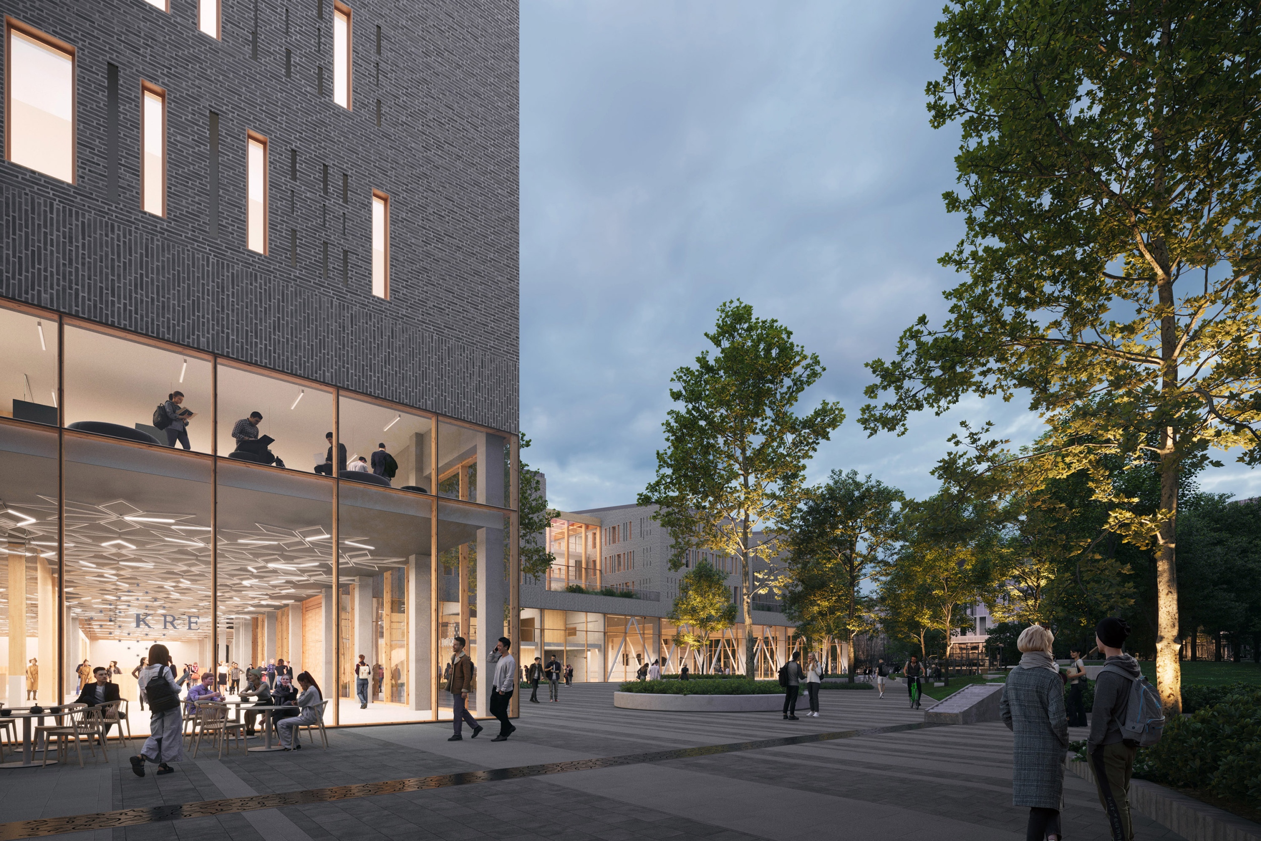 Az ingergazdag egyetemi közeg életre szóló élményeket és emberi kapcsolatokat hoz létre. Ezért a kortárs formálásának elsődleges feladata kiszolgálni a korszerű oktatás és a közösségfejlesztés térigényeit. Tágas és összekapcsolódó közösségi terek, aulák és tetőkertek találkozások helyszínéül szolgálnak. A felnyíló terek mellett azonban szükségesek az oktatást és kutatást segítő védett terek is. A téglatömbökben a koncentrált tanulás tantermei, előadói ismétlődnek, a tájékozódást segítő körbejárható közlekedőkkel, kilátásokkal a külső tér felé. A külső park zöldje a természetesen megvilágított termekből és az összekötő aulákból is folyamatosan látható, emellett a két belső aula zöld szigetei és a tetőkertek javítják a belső tér mikroklímáját, feltöltődést segítő környezet pszichológiai hatással bírnak és nem utolsó sorban a városi hősziget-hatást csökkentik.
