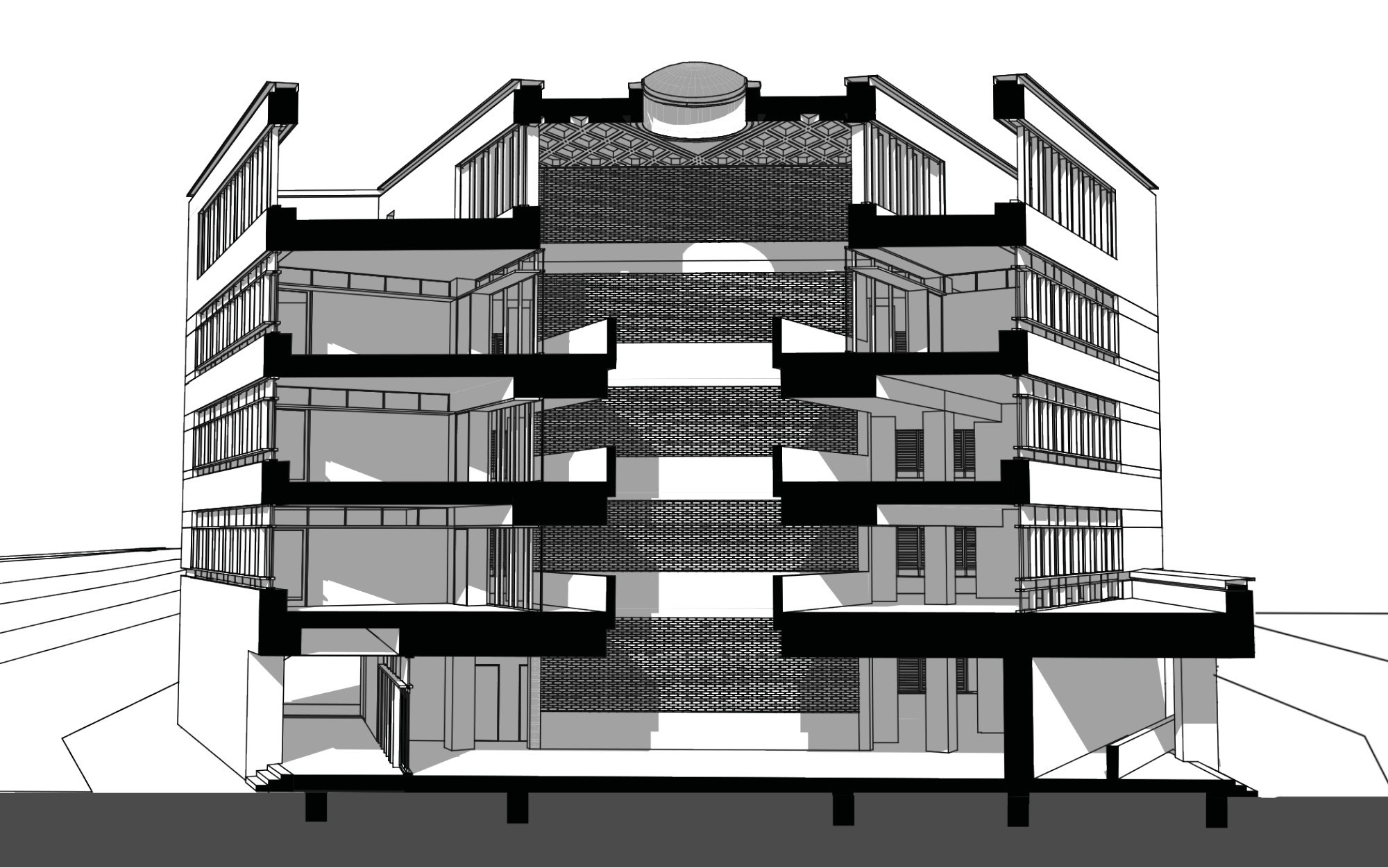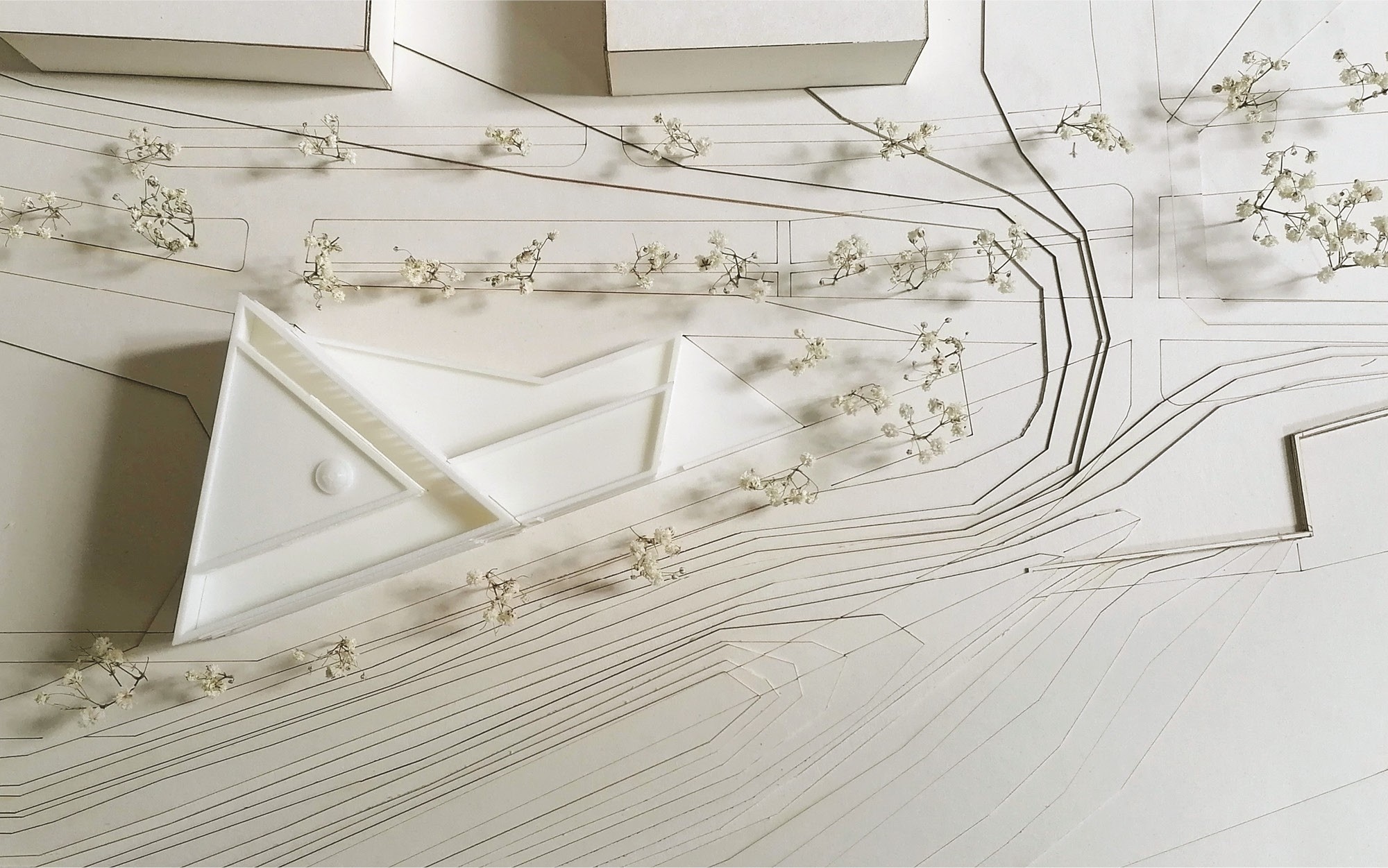 A rakparti sétány vonalvezetése formai inspirációként szolgált, iránya a földszinten „belevág” az épületbe, egy dinamikus szubsztrakciót hozva létre. A helyi szabályozások lehetővé tették magasabb épület kialakítását, így vertikális hangsúlyt kapott a tömeg, ahonnan panoráma nyílik a Dómra, a Belvárosi hídra és a Tiszára.