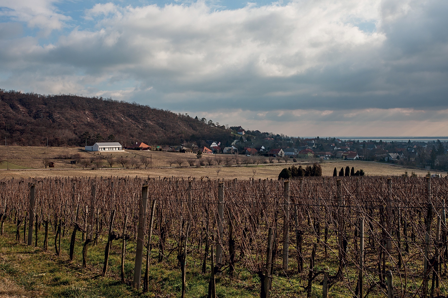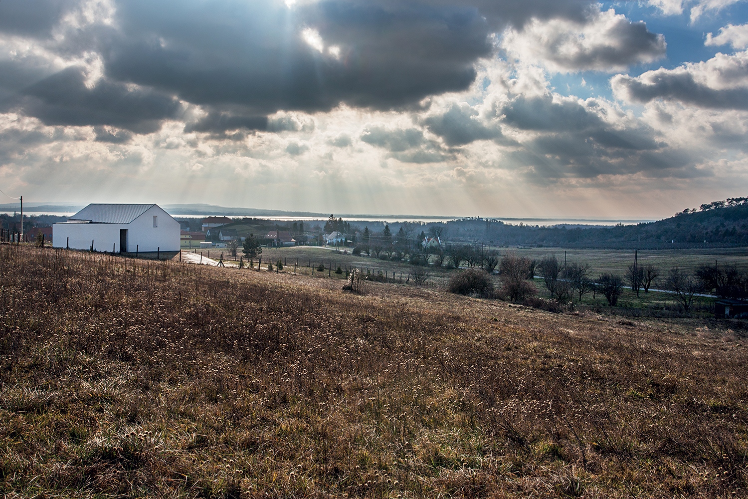 Nemrégiben készült el itt, a település felső vége és a szőlőhegy közötti lankás részen Béres Attila új épülete. Az épített környezet igen vegyes: itt-ott ordenáré, vagy túlzó, vagy jellegtelen. Van ugyan néhány omladozó, szépen romló présházacska a dűlők szélén, de a telken álló új háznak most nincs közvetlen szomszédja, a legközelebbi épületekről pedig jobb nem is beszélni. Észrevenni azt is, hogy a Balaton nincs igazán közel. Tükre délen, szinte a horizont szélén látható.