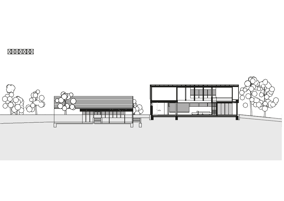 A kubusokra tört platform fölé elhelyezett tetővel a tömeg látványosan vált a települést meghatározó, archetipikus ház-formára, és a kissé hátrébb tolt kiszolgálóépület is ezt a játékot tükrözi le végül. Helyzetük és homlokzati részleteik inspirációs forrása az említett terméskövek és a köztük burjánzó növényzet voltak.