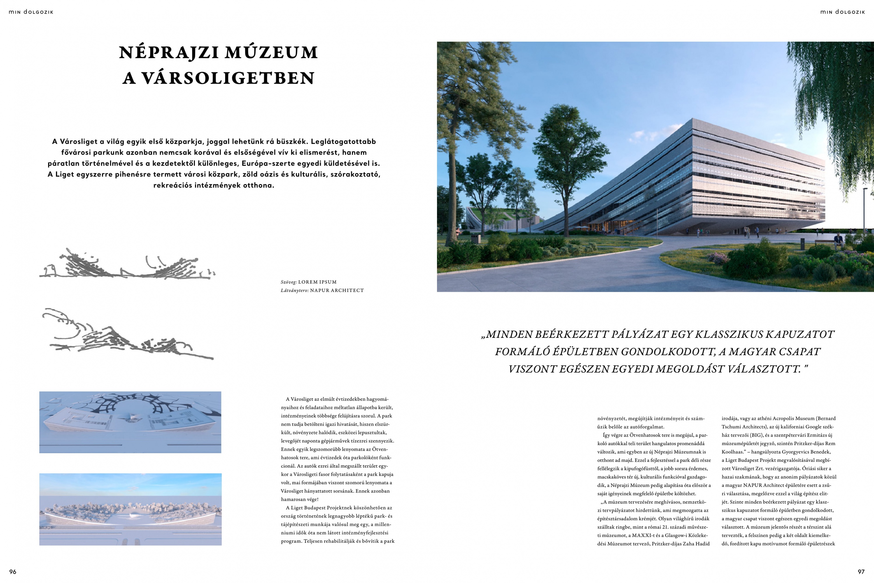 A díj nem csupán a magyar építészet kiváló teljesítményére, hanem a magyar innovációra és a magyar kultúrára is ráirányítja a nemzetközi figyelmet. Az International Property Awards negyedszázados történetében először fordul elő, hogy magyar épület a világ legjobbjaként végezzen kategóriájában. A Liget Budapest Projekt keretében megújuló parkban egyedülálló kulturális intézmények kapnak majd helyet, melyek világviszonylatban is kiemelkedő építészeti megoldásokkal bírnak. Mellette az Ötvenhatosok tere is megújul, a betontenger kizöldül, hangulatos promenáddá változik, és az új Néprajzi Múzeumnak is otthont ad majd. Nem lesz már itt kipufogófüst, sem macskaköves tér, sem összevissza parkoló, utat torlaszoló autók. Lesz helyette kulturális funkcióval gazdagodó tér és egy múzeum, melynek minden szegletét bejárhatják a látogatók. Sőt, ezzel a fejlesztéssel a Néprajzi Múzeum alapítása óta először a saját igényeinek megfelelő épületbe költözhet.
