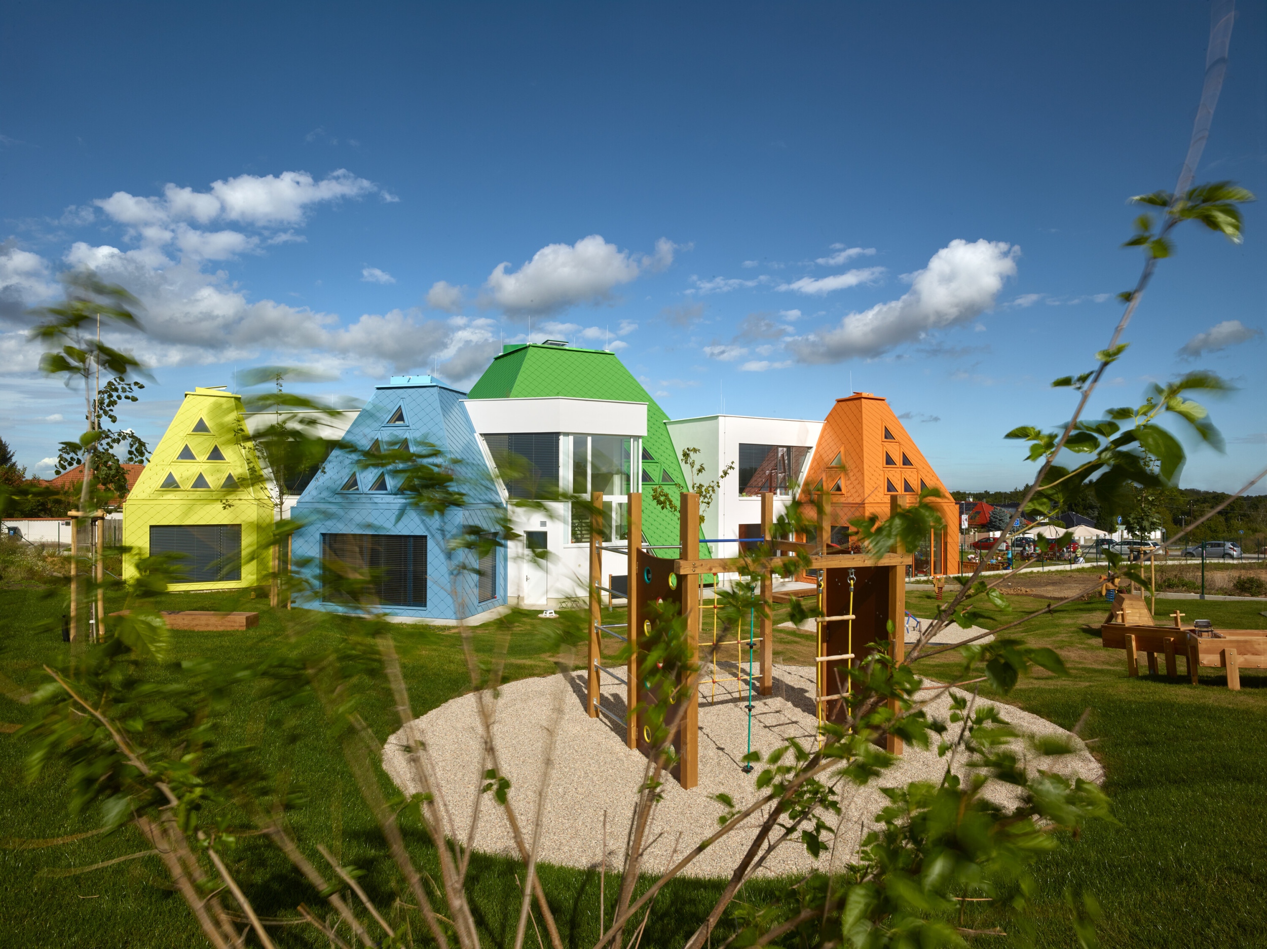 A megvalósult épület tereiben és részleteiben a gyerekkor misztériuma ölt testet: a kíváncsiság, kezdeményezőkészség, tisztaság, optimizmus, kiszámíthatatlanság, az élet szépsége felett érzett felhőtlen öröm.
