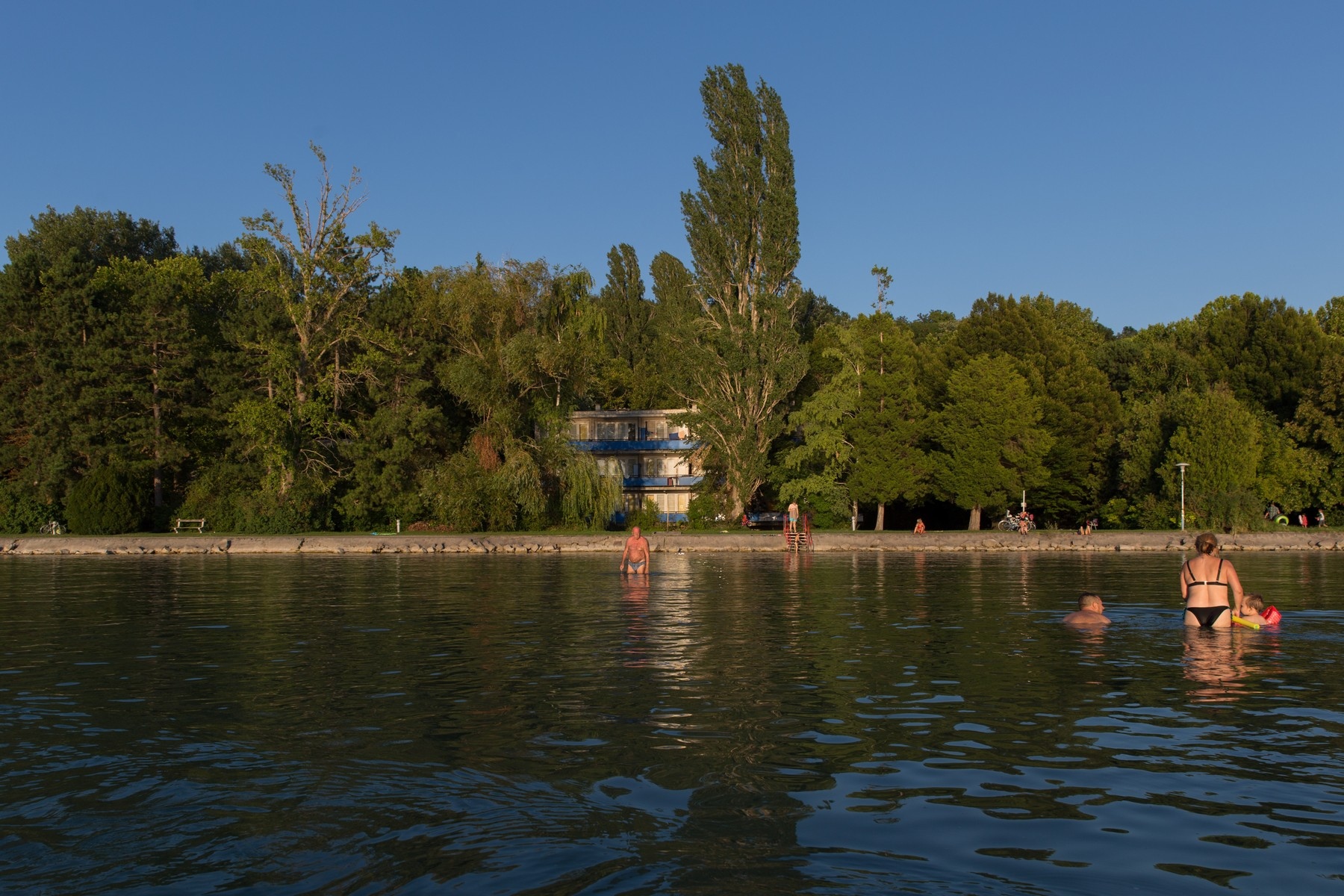 A tavat és településük érdekeit védő civilek, a balatonvilágosi önkormányzat és a beruházó PRO-MOT HUNGÁRIA Ingatlanfejlesztő Kft., illetve csendestársa, a Hellnarik Hospitality Kft. csatározásairól, a beruházás hátteréről bőven tájékoztat a sajtó, legalaposabban Zsuppán András cikkei a Válasz online oldalán. Mi ezeket mellőzve a terület ma már sajnos csak nyomokban látható építészeti múltját vesszük szemügyre, az említett cikkekre, továbbá Walton (Reimholz) Eszter fotográfus 2017-ben készült képeire és tanulmányára – na meg az elvarázsolt parton szerzett saját benyomásainkra – alapozva.