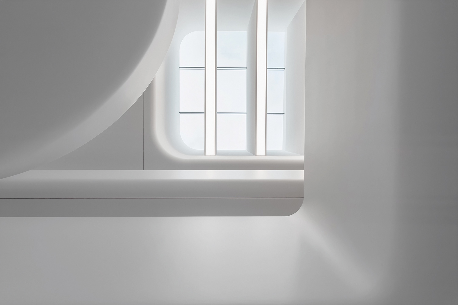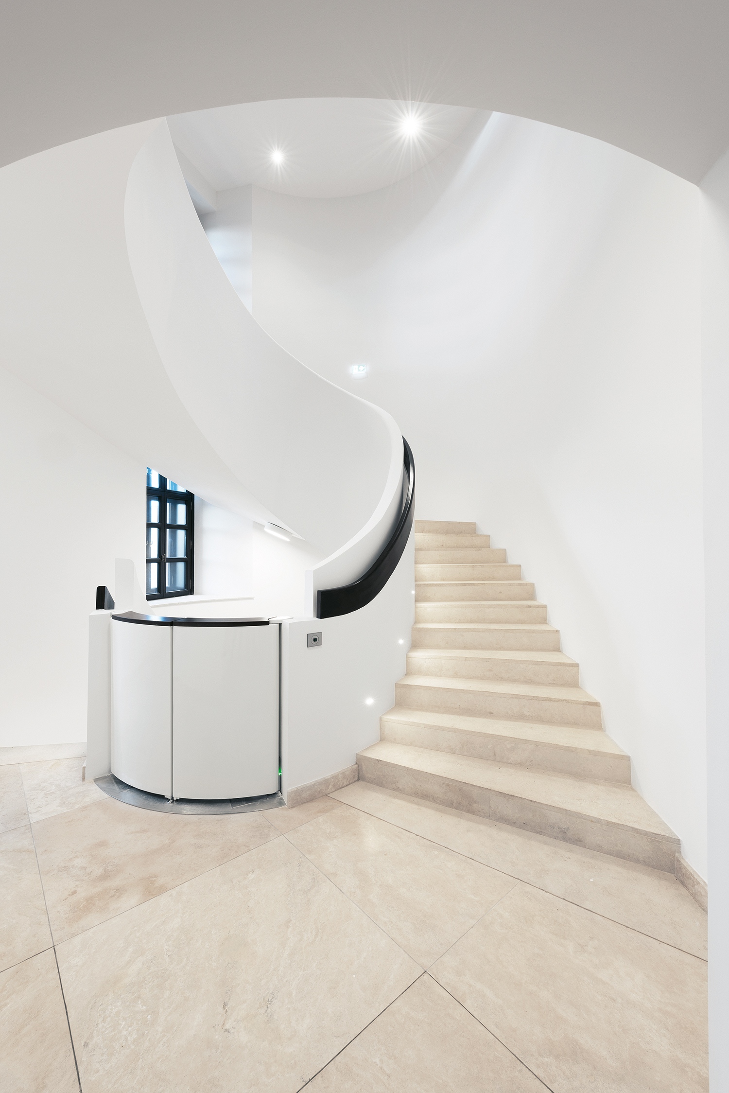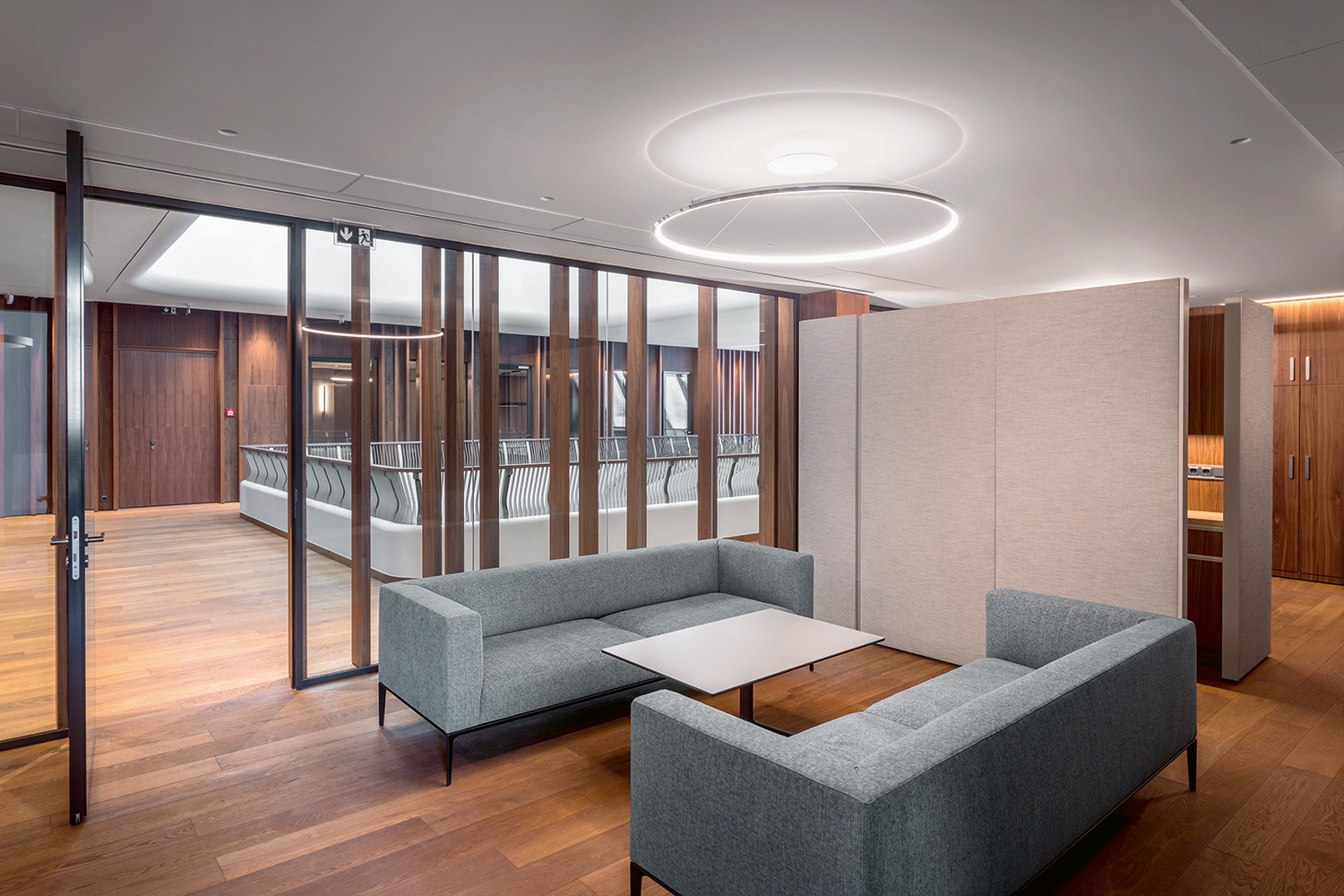 Megbízói elvárásra a homlokzat udvariasan illeszkedő, egy kőtömbből faragott ablakkávái középkori előképeket idéznek. A visszafogott eleganciájú belső tereket a minden részletében átgondolt, intelligens világítással ellátott átrium szervezi, amelynek puha formáit az építésziroda visszatérő motívuma: közösségi térként és esztétikai elemként is értelmezhető, húzott karú csigalépcső uralja. Ahhoz, hogy az évszázadokon át alakítgatott, mégis szűkös és kötött alaprajzú kolostorépületet a miniszterelnöki reprezentáció kereteihez igazítsák, jó szolgálatot tett a párizsi Élysée-palotához hasonlóan előudvarként átértelmezett belső kert.