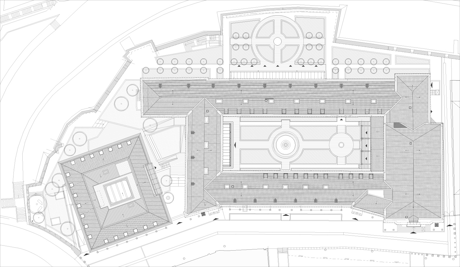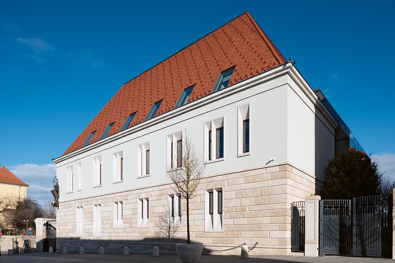 A munka a konkrét tervezési program kialakításával, azaz az igények és lehetőségek felmérésével indult. Gyorsan kiderült, hogy a szükséges reprezentatív terek elhelyezésére a kolostor felel meg a leginkább, az irodai és közösségi funkciók pedig egy új irodatömbbe férnének. Utóbbi a háború előtt a Püspökkert helyén állt klaszszicista ház léptékét és beépítési karakterét veszi át. Itt a legnagyobb kihívást a régészeti maradványok (a korábbi alapfalak, valamint az előkerült középkori pincék) megőrzése jelentette. Ennek teljesítésével is meglett a hét szint: a föld alatt kettőn garázs és raktárak, a földszinten kiszolgáló területek és menza, az elsőn és a másodikon jellemzően 2-4 fős irodák, a tetőtér két emeletén pedig kiszolgáló helyiségek, öltözők és gépészet. (A két épületben összesen 150-160 munkaállomás található.)