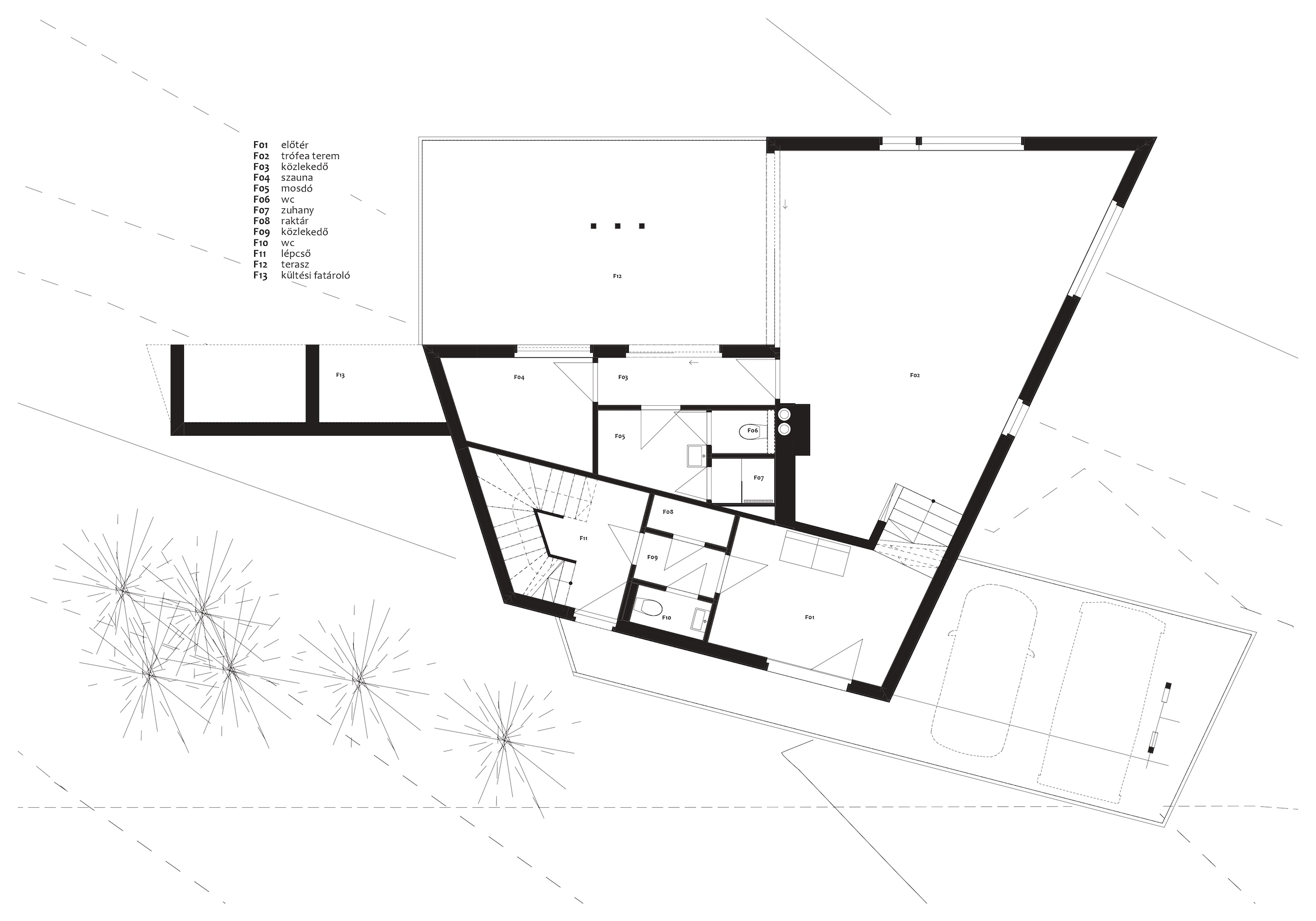 Nem sokkal később, ha ma keveredik oda egy eltévedt vándor – avagy a társaságba meghívott vadász – már egészen más kép fogadja, mint főhősünket néhány évvel ezelőtt. A fák között szinte elvesző régi vadászház mellé egy teljesen új, első ránézésre szokatlan, sötét tónusú, nagyon mai ház került. Az első meglepetés után azonban egyfajta megnyugvás tölthet el minket, hiszen a szokatlan forma- és színvilág mindemellett jól harmonizál a tájjal, a kellemesen elnyúló dombvidékkel és az erdővel.