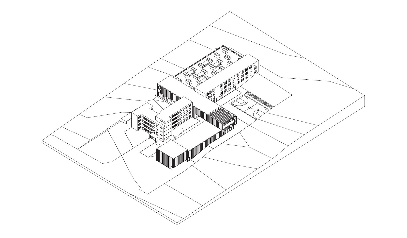 Élményszerűen teljesíti ki a tervezők eredeti vízióját, amely a régit megtartva és folytatva, egy komplex épületcsoport kortárs egységbe ötvözésével kelti új életre az iskolát. A teljes alaprajz négy udvart fog közre, mindegyik más célt szolgál: az első ütemben már létrejött az eredeti téglaépület és az új szárny közötti kisebb udvar és a tornacsarnok fölötti, pihenőkkel és növényekkel komponált tetőkert, most pedig megvalósult az új főbejárat előtti gyülekező-zsibongó udvar és a hídépítmény mögött egy tágas, oldallelátóval kiegészített sportudvar is. Ezzel az iskola élete új szintre lépett, a külső és belső terek együttese sokrétű használatot, az együttlét változatos formáit kínálják.