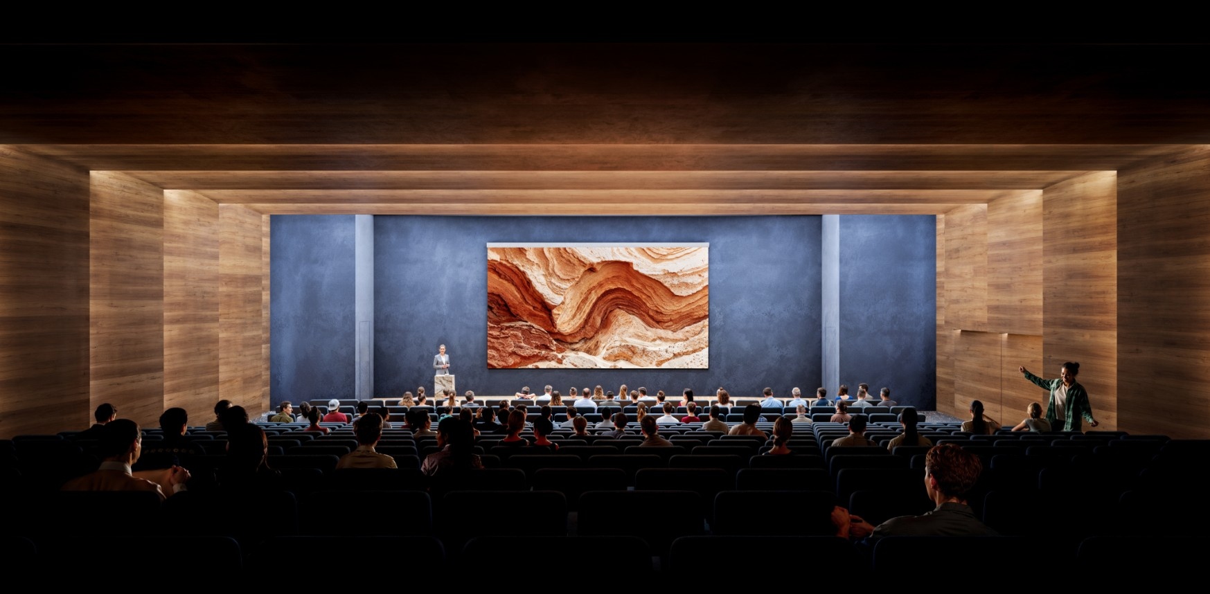 Az előadótermek multifunkcionalitását biztosítva catering háttér helyiséget alakítottunk ki az előadótermek előteréhez kapcsolódóan. A szintek közötti akadálymentes mozgás lehetőségét az előcsarnokból elérhető felvonó biztosítja.