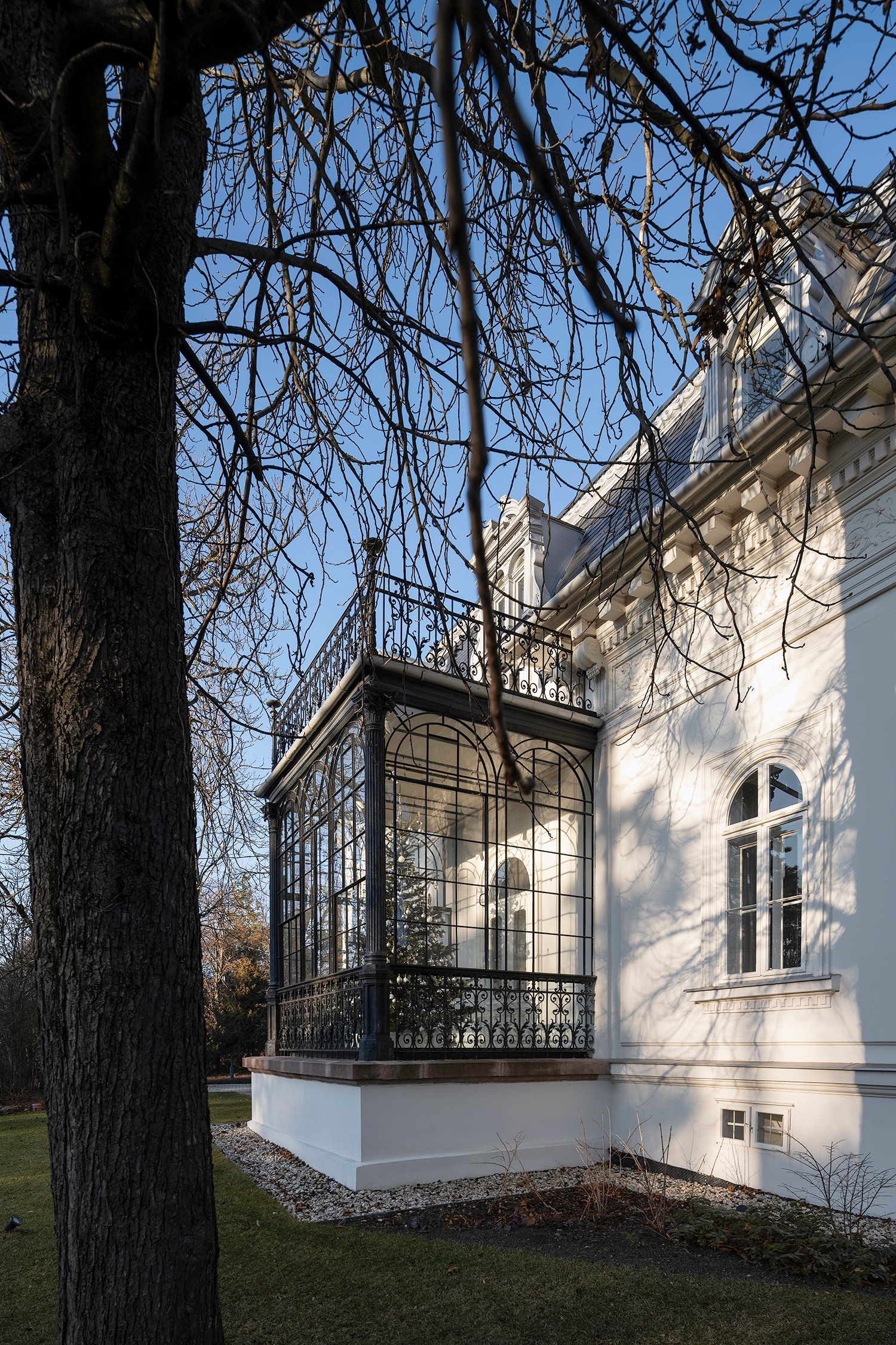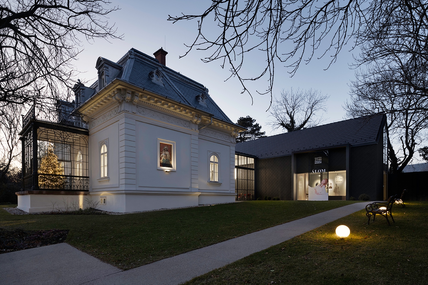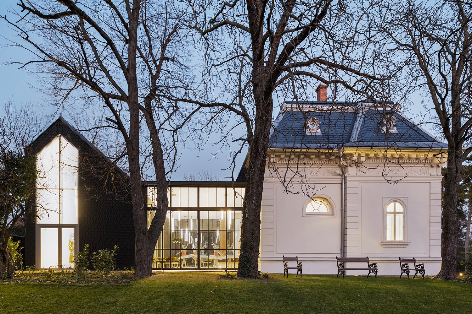 Az elképzelt funkció – kiállító és közösségi tér – megkövetelte az alapterület bővítését. A Bánáti + Hartvig Építész Iroda tervezői koncepciója nyomán, a helyben található adottságokat fejlesztették tovább, a melléképületet öltöztették fel és alakították a villa méltó társává, míg a villa megkopott eleganciáját szolidan, mérsékelt színvilággal és architektúrával élesztették újjá. Minden értékes építészeti részletet megtartottak: a télikertet, a tetőt, a díszműbádogozást felújították, a homlokzat a korábbi sárga, valamint a vakolatmezők erősen strukturált díszvakolata helyett a tagozatokkal együtt fehér vakolást kapott.