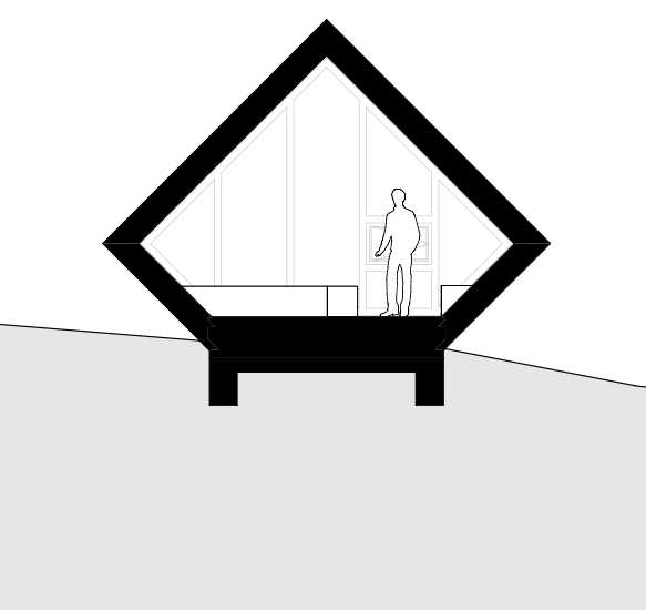 Az épület tervezési programja talán legjobban egy természetbe illesztett hotelszobaként írható le.