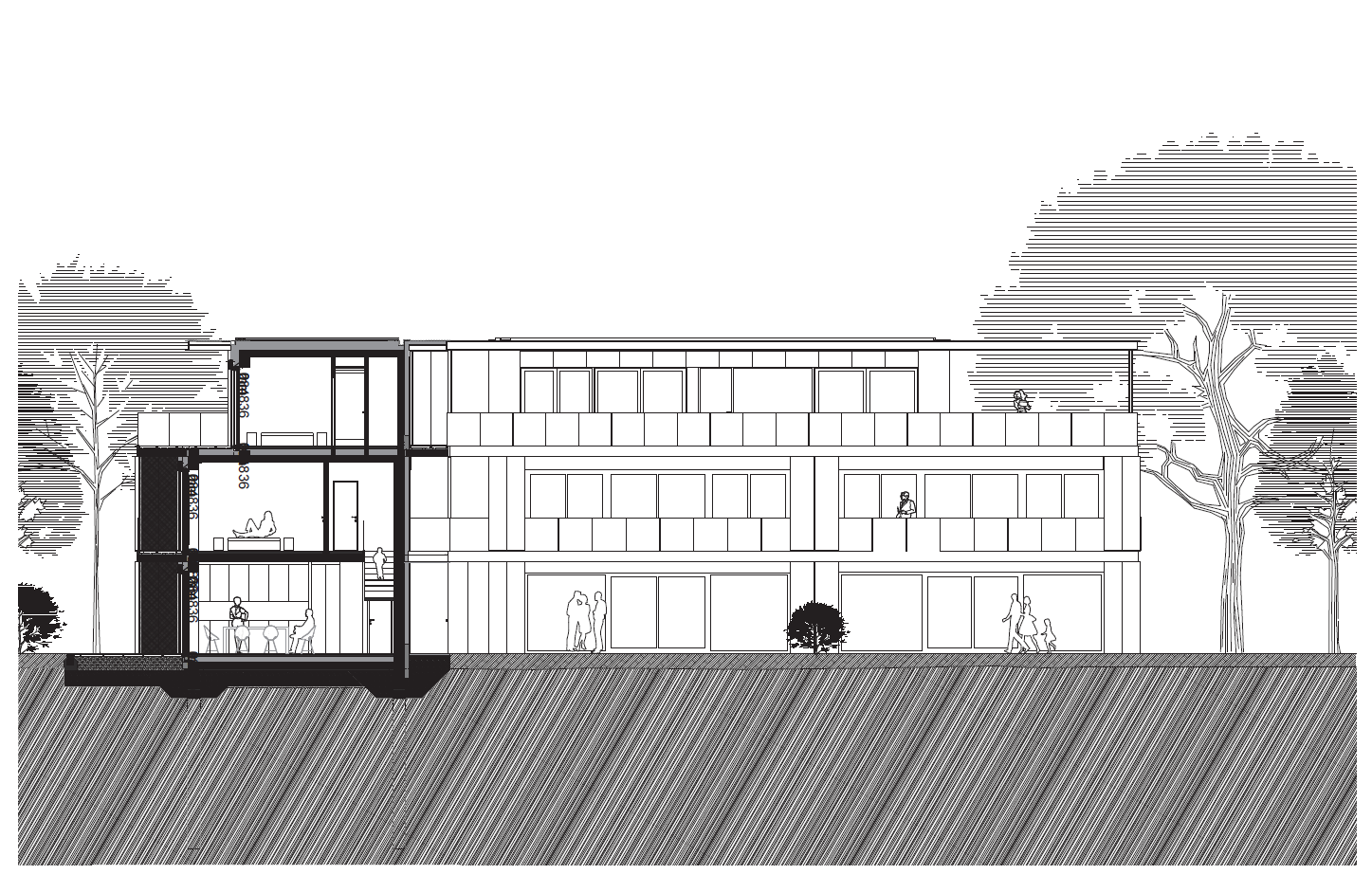 Ennek az apartmansornak az erőteljes formálása merőben eltér minden környékbeli urbánus formától, de épp az épített környezet karakternélkülisége legitimálja a markáns húzást. Erről szóló cikkünket a 194-es, 2024/6-os lapszámunkból közöljük.