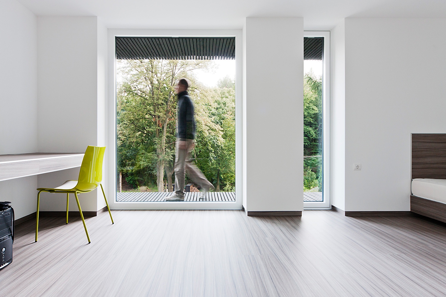 Rettenetesen szeretek számolni. Ezzel a kijelentéssel fogad minket a házigazda, megbízó és kivitelező, Hideg Attila, aki szakmáját tekintve geodéta. Ez a ház a negyedik otthon, amit életében épített. Ebben az esetben azonban ezt most vegyük tényleg szó szerint. Minden csavarhoz köze van, a villanyszerelésen kívül minden az ő munkáját dicséri. Négy év, körülbelül 625 munkanapot töltött a ház kivitelezésén. Számolt, számolt és számolt. Minden az alapos előkészítésen múlik. Ez a második tételmondata. Hideg úr csupa talány. Szenvedélyesen foglalkoztatja a kortárs magyar építészet, az elmúlt tíz évben épült minden valamirevaló családi házzal kapcsolatban, képben van. Tíz órán át hallgattuk, de valószínűleg egy hétnyi mondanivalója lett volna. Ugyanakkor végig az volt az érzésem, hogy ezzel a Kőszeg üdülőtelepén, a Szabó-hegyen épült házzal kapcsolatban a valóban lényeges dolgok elmondhatatlanok.