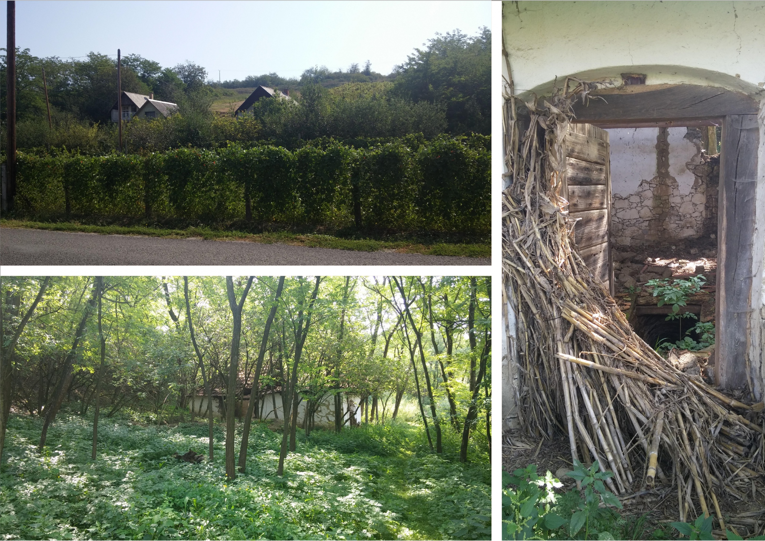 A falut határoló dombvidéken szántóföldek, gyümölcsösök és szőlőskertek találhatóak, hiszen korábban főként mezőgazdasággal foglalkozó község volt. A magaslat tetején kisebb méretű faluként terülnek el a présházak, melyek az itteni családok tulajdonába tartoztak. Az 1870-es években jelentkező filoxéra vész óriási károkat okozott a gazdáknak, akik ezután áttértek a mezőgazdasági termelésre. Mára megszűnt a földművelés igénye, így az egykoron virágzó domboldal kihalt, a présházakat sem használja senki. A hajlongó szőlőtőkék, és a sűrű bozótossal benőtt kunyhók emlékeztetnek csupán az egykori világra. Kevés építmény maradt, amely még ma is aktív használatban van. Ezek az épületek a domb lábánál és a domboldalon, a legrövidebb úton megközelíthető területeken helyezkednek el.