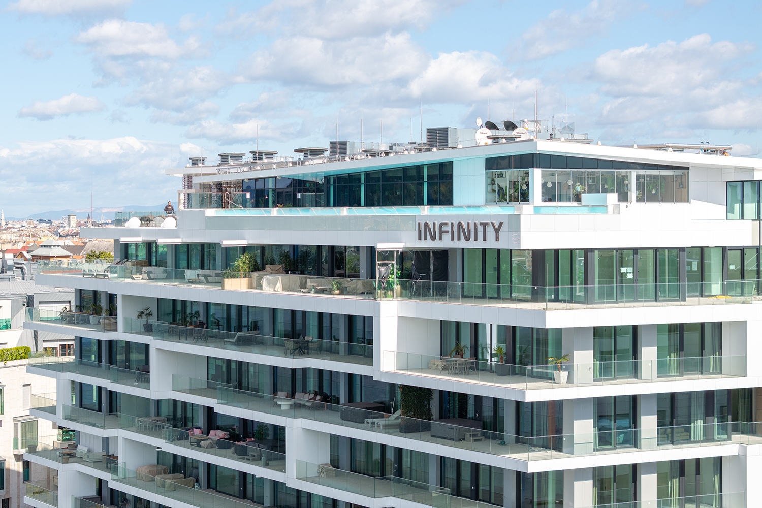 Az INFINITY edzőteremmel, jakuzzival felszerelt. Láthatóan fontos szempont volt az aktív kikapcsolódás, a relaxálás lehetőségének megteremtése ebben a fiatalos benyomást keltő hotelben. Ezek a szolgáltatások már önmagukban luxust jelentenek, hát még az a végtelenített medence, amely a tetőn húzódik végig, a Sky Bar részeként. A tetőtéri bárba belépve úgy érezhetjük, mintha egy távoli, egzotikus ország tengerpartján lazítanánk, és már csak a koktél hiányzik a kezünkből (amit ott természetesen meg is kaphatunk). A szálloda legjava ez a pálmafákat ábrázoló, fali dekorációval burkolt „ivó”, ahol számos növény „társaságában” fogyaszthatunk. A trópusi hangulatot tetézik az áttört, légiesen könnyed, finom anyagú lámpák.