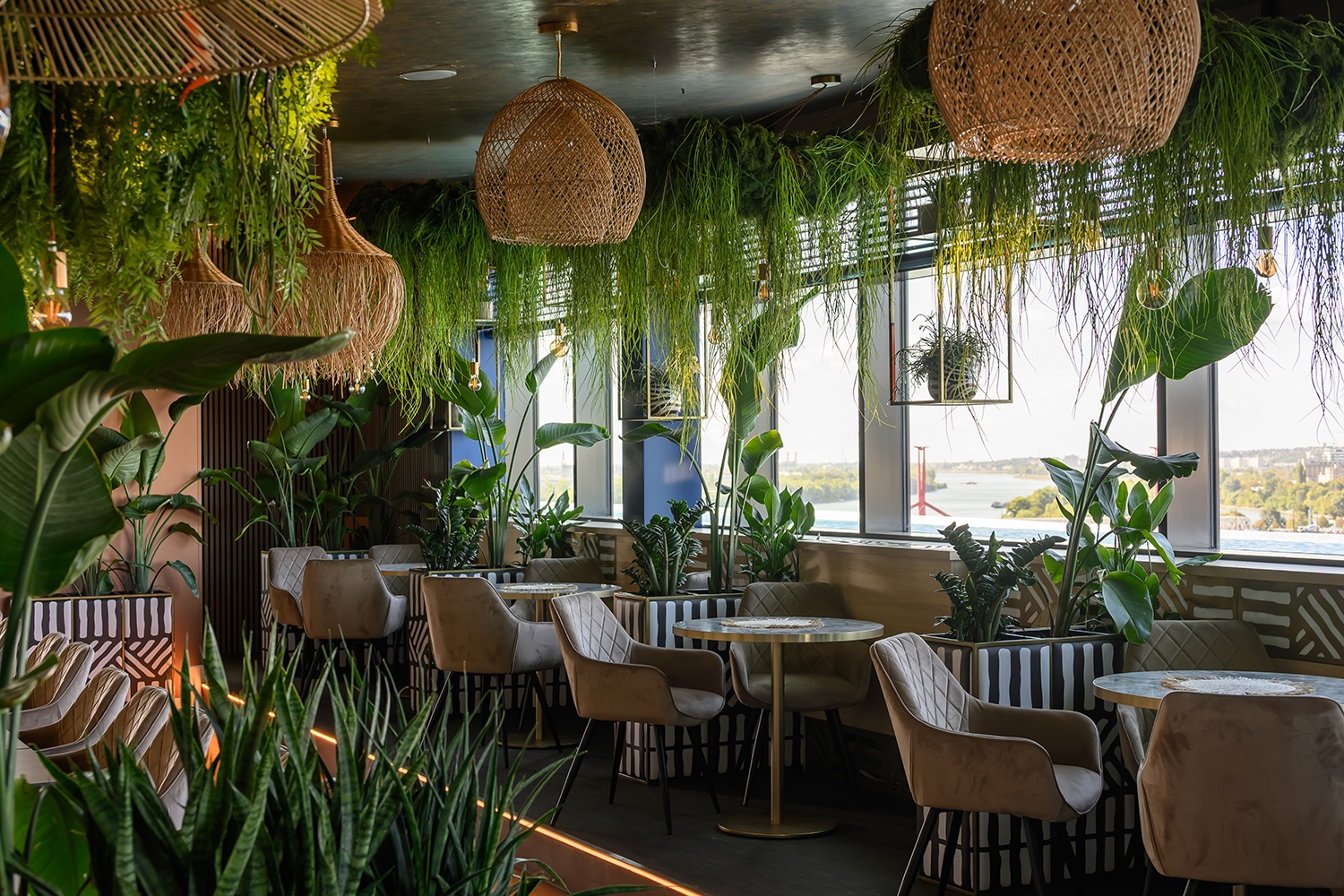 A beltér színvilága a barnától a zöldön és kéken át a szürkéig, feketéig terjed. Nem véletlenül eshetett a választás a természet színeire, hiszen mégicsak közel a víz, a Duna, és a szálloda mögött egy fákkal szegélyezett út húzódik.