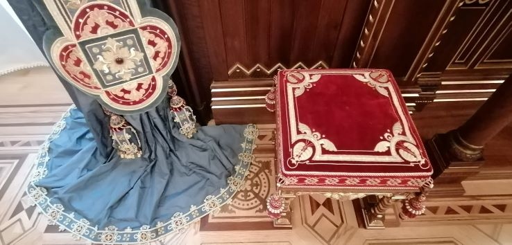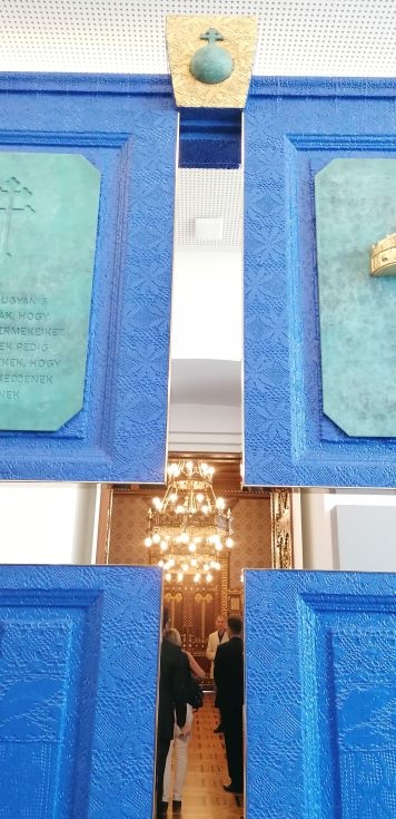 A történelmi kontextus feldolgozására a terem köré szervezett kamarakiállítás szolgál, ahol Gulyás Gábor kurátor A Budavári Palota csodája című kiállítás keretében Szent István alakját, illetve a terem testvér-darabjait állítja fókuszba, illetve Havadtőy Sámuel Szent István intelmeit feldolgozó szakrális installációja fogadja a látogatót. A kereszt alakban elhelyezett, képzőművészeti eszközökkel úgyszólván kegytárggyá transzformált ajtók labirintusán át közelíthetjük meg a tényleges ajtót, amely az újjáépített terembe vezet, előbb azonban elmerenghetünk az államalapító király ma is felettébb aktuális gondolatain alázatról, bölcsességről és más kívánatos államfői erényekről.