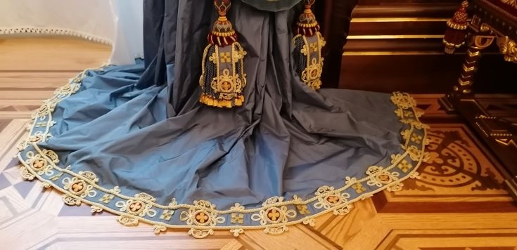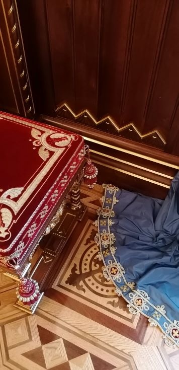 A most megépült és augusztus végéig ingyenesen (majd ezután borsos belépő ellenében) látogatható terem pontos mása az eredetinek, egészen a spaletta-reteszekig és a függönyhúzókig bezárólag. A hiteles másolatokhoz egyrészt korabeli fotók és tervek, másrészt mélyre ható kutatómunka, művészettörténeti analógiák, a felsorolt cégek egyéb munkái jelentették a forrást Dr. Rostás Péter művészettörténész, a Szent István-terem újjáépítésének vezető szakértője, és Angyal Tibor építész, a terem tervezője számára. A korabeli technológiákhoz értő mesterek felkutatása szintén nagy feladatot jelentett, a textilek például most is, mint annak idején, olasz szövőműhelyben készültek. A semmiből visszaépített tér minden – egyébként jogosan felvethető – műemléki szempontú kritika dacára lenyűgöző módon közvetíti az akkori pompát és gazdagságot. Azt százegynéhány év távlatából már lehetetlen eldönteni, hogy ezt születéskori művészi színvonalának, a hiteles rekonstrukciónak, vagy a 19. századi iparművészetet illető mai szemléletünknek köszönheti.