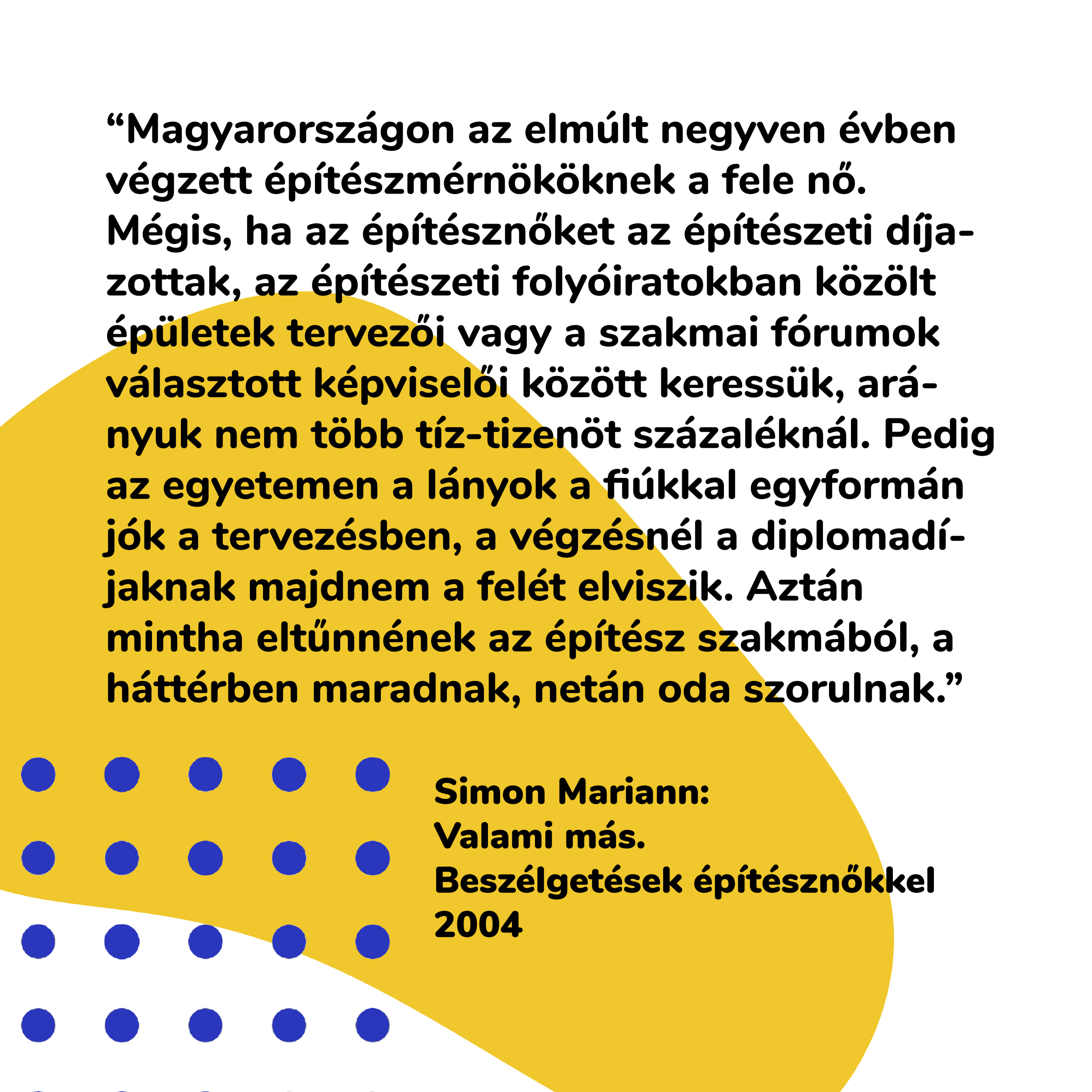 „Nagy probléma, hogy hiányoznak a szakmából a jól látható női szerepmodellek. Így nehezebb elképzelni, hogy nőként is elérhetők ugyanazok a célok és eredmények, mint amiket férfiak tűznek ki maguk elé” – mondja a fiatal építészhallgató.