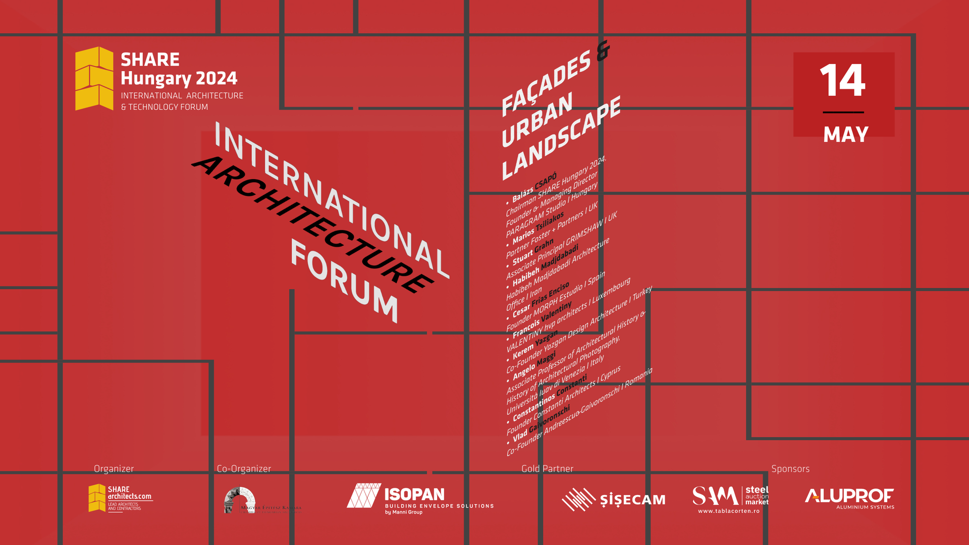 A SHARE Magyarország a hazai és nemzetközi előadók bevonásával az építészet és az építési technológiák legújabb innovációit gyűjti össze és mutatja be, emellett támogatja új együttműködések létrejöttét. A konferencia a SHARE Architects, Közép- és Délkelet-Európa vezető építészhálózati platformja szervezésében, a Magyar Építész Kamara partnerségével, az ISOPAN, a ȘIȘIȘECAM, a Steel Auction Market és az Aluprof támogatásával, valamint az Építészfórum médiapartnerségével valósul meg.