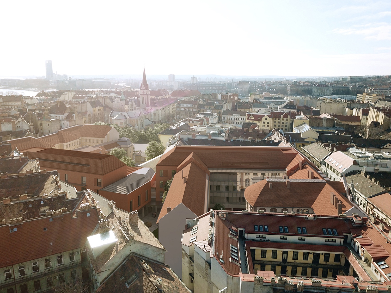 A projekt során az új épületek külső megjelenését téglavörös, strukturált vakolattal alakítják ki, amely harmonizál az eredeti épületek homlokzatával. Az új homlokzatokon plasztikus vakolatdíszítések, modern üvegezés, valamint egyedi árnyékolóelemek lesznek. A történeti homlokzatok megőrzik eredeti arculatukat, visszaállítva a régi színezésüket. Az épület homlokzatain és belső udvarán az anyaghasználat visszafogott: üveg, vakolat és az acél dominál.