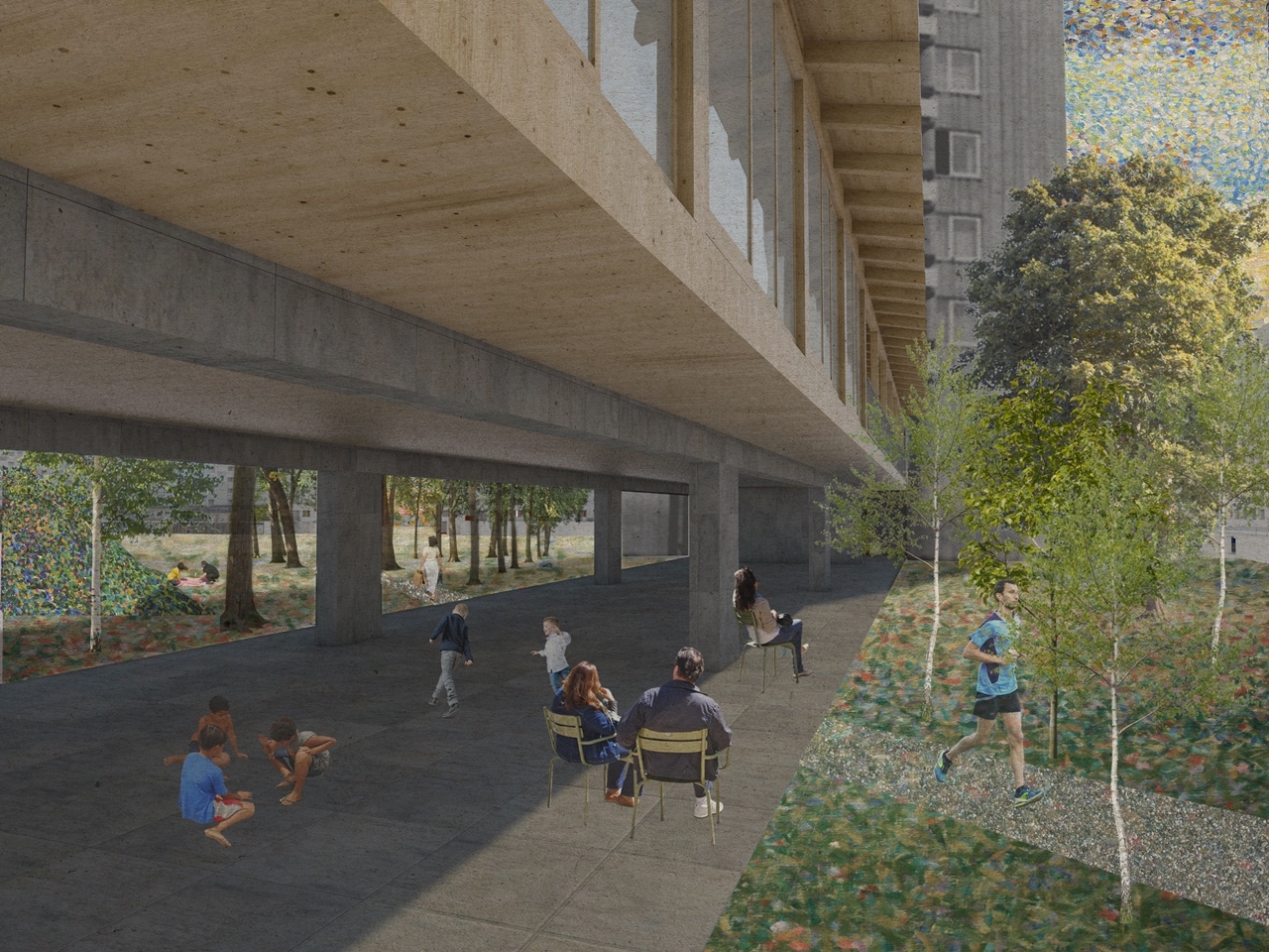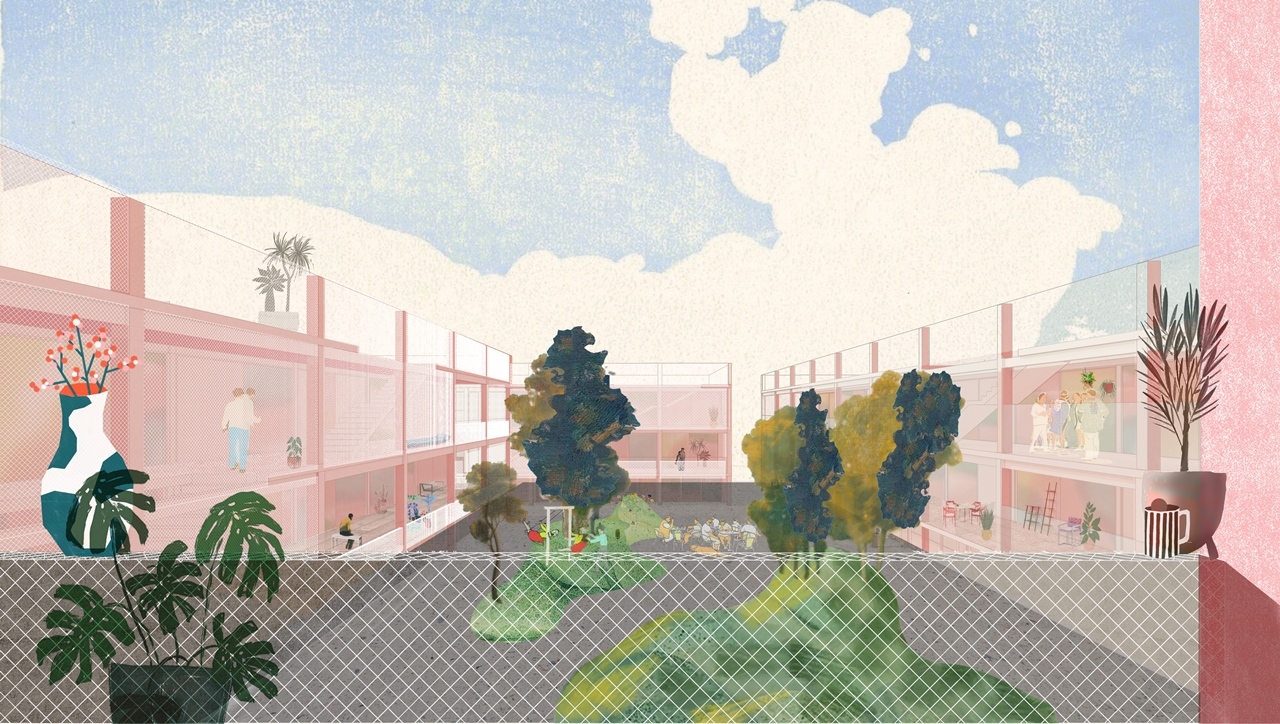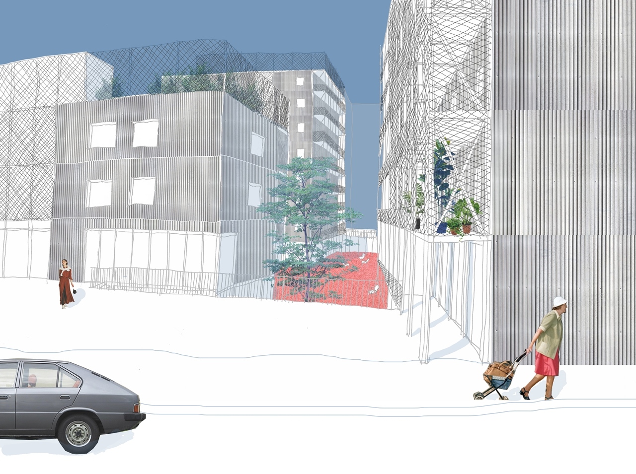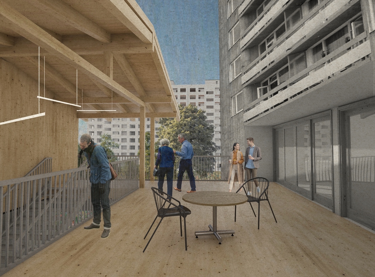Budapest egyik legnagyobb lakótelepének revitalizációjára vállalkozik Bús Bianka épület- és téregyüttese, amely a panelrengeteg lakóinak életkörülményein kíván javítani azáltal, hogy a köztes tereket valóban használt életterekké alakítja át. A koncepció három elemből áll: a sávházakhoz és a pontházakhoz kapcsolódó pavilonokból, illetve az ezeket közrefogó parkból. „A célom az, hogy új elemek hozzáadásával aktivizáljam a köztereket, lehívjam az embereket a lakásaikból.” – olvashatjuk a tervező kommentárjában. A terv növelné a parkolási lehetőségeket a telepen, ami pedig még fontosabb: co-living és co-working funkciókkal, szolgáltatásokkal gazdagítaná a helyiek életét.