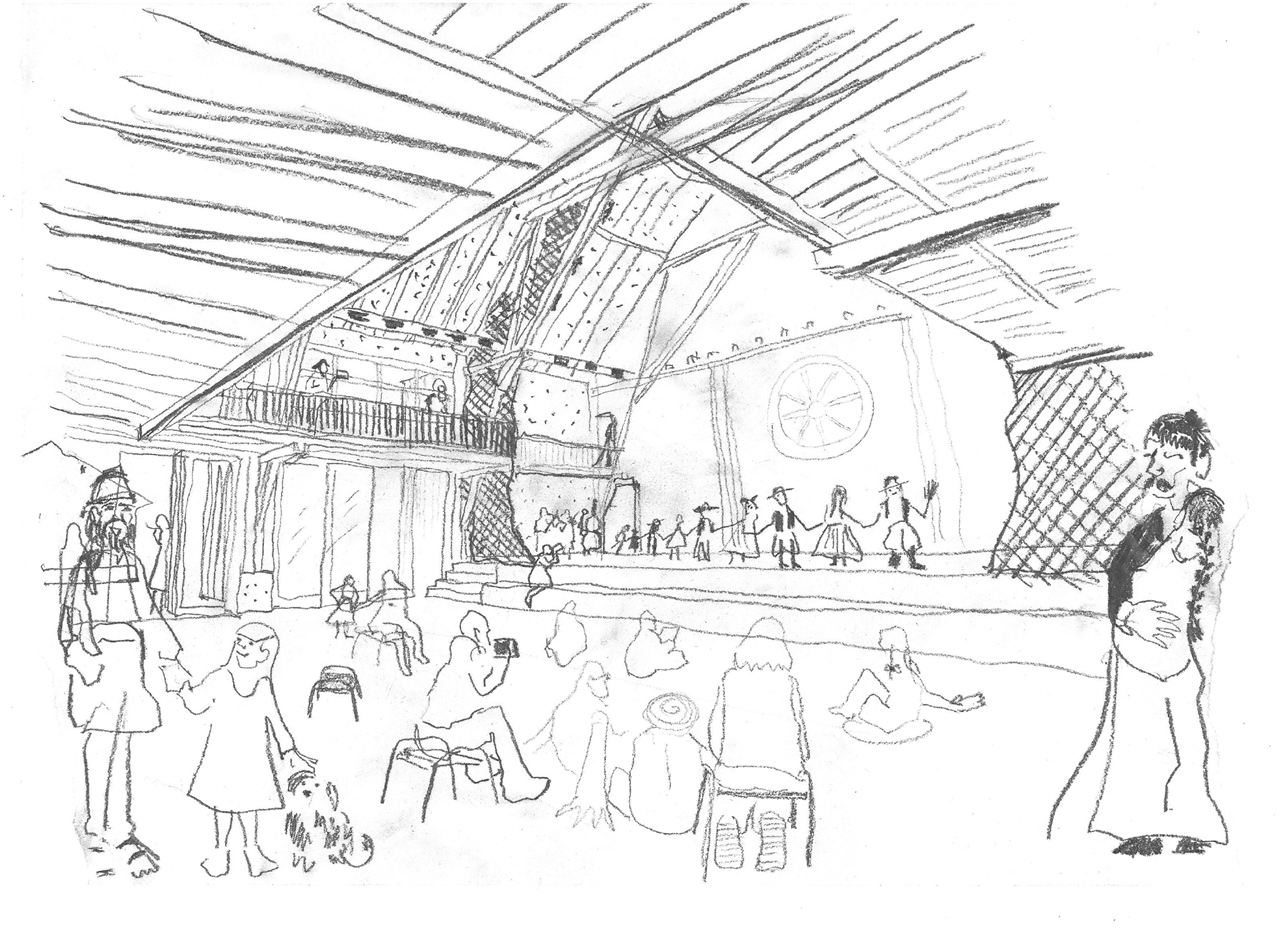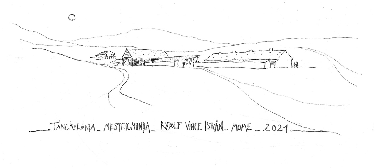 Rudolf Vince István szintén a közösségi lakhatás kérdéseivel foglalkozik, de a célcsoportját tekintve eltér a korábbi felvetésektől. Egy néptáncos, népzenész társaságnak tervezett, akik mind egy faluban élnek Miskolc-Tapolca déli lejtőjén az erdő és a város között. A közösség számára kiemelt értéket jelent a kultúra ápolása, tovább örökítése, miközben nemcsak egymással, de a természettel is együtt élnek. A személyes vonatkozású építészeti koncepció a Várhegy alatti elhagyott mészkőbánya kolónia-házait gondolja újra úgy, hogy figyelemmel van a környezetre és az itt élő harminc felnőtt, illetve huszonöt gyerek igényeire. A területen mára már eltűnt épületek helyén új lakóépület és csűr „ad teret az élő hagyománynak.”
