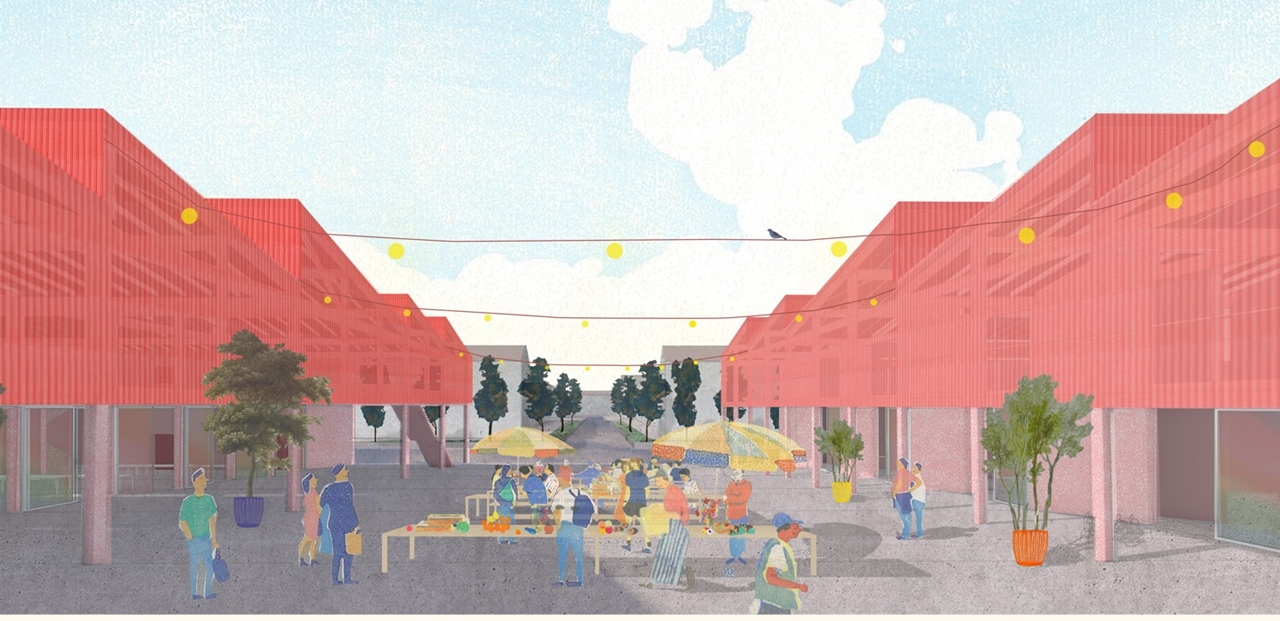 Jakabos Júlia diplomatervét alapos kutatási munka előzte meg. Szakdolgozatában harminc év lakás- és társadalompolitikájának, illetve szociális intézményrendszerének tükrében vizsgálta a jelenlegi lakhatási válság okait és összefüggéseit. A koncepció a lakásszegénység, hajléktalanság, munkanélküliség, alulfoglalkoztatottság és társadalmi kirekesztődés viszonyrendszerére reagál, és igyekszik hosszabb távon javítani a lakáshoz jutás gondjain azáltal, hogy egymás mellé rendeli az átmeneti lakhatást és a társadalmi aktivitást. Olyan alternatívát kínál, amiben a lakhatás a foglalkoztatással és az oktatással optimális egységet alkot. A tervezés helyszíne a Teleki téri piaccal átellenben található saroktelek, amely jól integrálható a VIII. kerületi városrészt meghatározó ipari és kereskedelmi intézmények sűrűjébe.