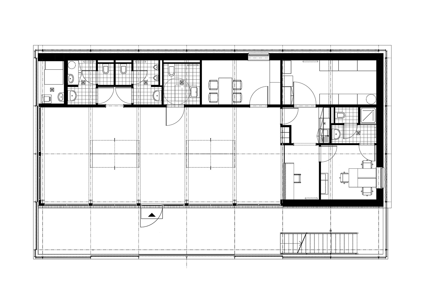 A ház rácsos héjszerkezete és üvegfelületei épp ezt hivatottak megteremteni. Rendkívül izgalmas a nyitott térrész felépítése, hiszen egy szintekkel történő játék konstruálja a teljes felületet, amely a bemélyített mikro-közegek által alkalmas arra, hogy lekerítődjenek kisebb egységek, amelyek kisközösségi játékok, tevékenységek művelésére hivatottak, ezáltal lehetőséget teremtenek valódi, építő csoportok megszületéséhez. Mind a közösségi ház szociális munkások általi működtetése, mind a fiatalok sporttal történő megszólítása olyan lényegi pontjai ennek a revitalizációs folyamatnak, amelyek által a kerület sikerrel tud önnön árnyékából kilépni és valódi értékeket felmutatva büszkén vallhatja józsefvárosi identitását. Külön öröm, hogy az építészet alkotó módon tud hozzájárulni egy új öntudat megszületéséhez.