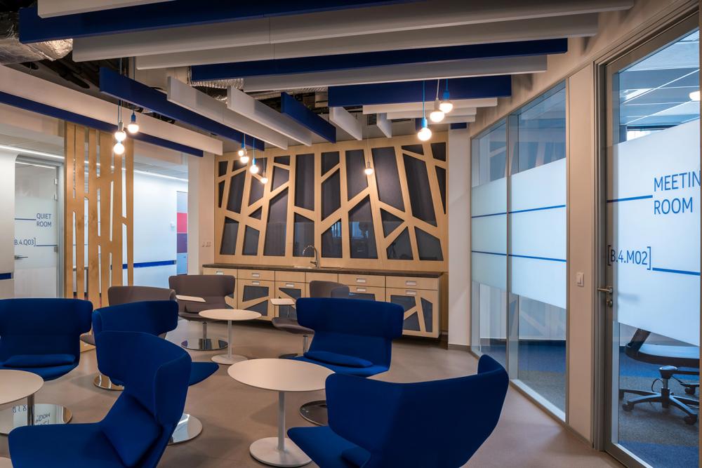 A különböző egységekre jellemző motívumok, design elemek és eltérő színvilág alkalmazásával kívánták elérni az egységek egyediségét. A finnországi szárnyban a modern, skandináv hatású, erdőt imitáló fa térelválasztó elemek adják meg az irodaterület karakterét. A fa térelválasztók erdő motívuma a tapéta grafikáiban, illetve a fa lámpaburákban is megjelenik. A magyarországi témát az erőteljesebb piros szín képviseli, a falgrafikákban magyar motívumok, a berendezésekben pedig magyar tervezők design termékei jelennek meg. A globális világ szárnyában a kapcsolódást szemléltető design elemek alkalmazásával egy high-tech világban érezhetjük magunkat, ahol minden mindennel összekapcsolódik. A frissesség, a lendületesség, a modern gondolkodásmód jellemzi az itt kialakított belső tereket, amelyek az ultramodern lámpákban és grafikai illusztrációkban is visszaköszönnek. Az open office és break-out tereket kényelem és funkcionalitás szerint alakították ki, amelyekből a legújabb technológiai újítások sem hiányozhatnak.