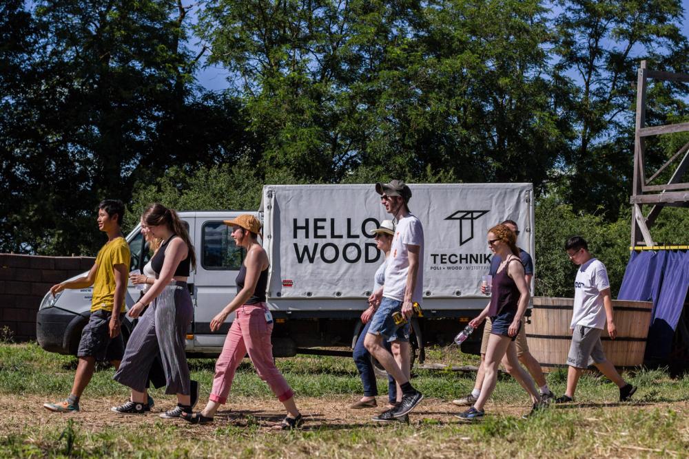 „Az egy félelmetes dolog, hogy állsz a megvásárolt birtokon, a semmi közepén, és azt mondod, hogy akkor legyen itt egy falu” – mondja Pozsár Péter, a Hello Wood egyik alapítója. Hatalmas kihívás elé néztek a nyári egyetem építészei, pedig egy egyszerűnek tűnő kérdést kellett megválaszolniuk: mi lenne az első dolog, amit egy üres telken megépítenének? Valaki a raktárral kezdte, másnak a lakóház vagy egy szakrális tér létrehozása volt a legfontosabb.