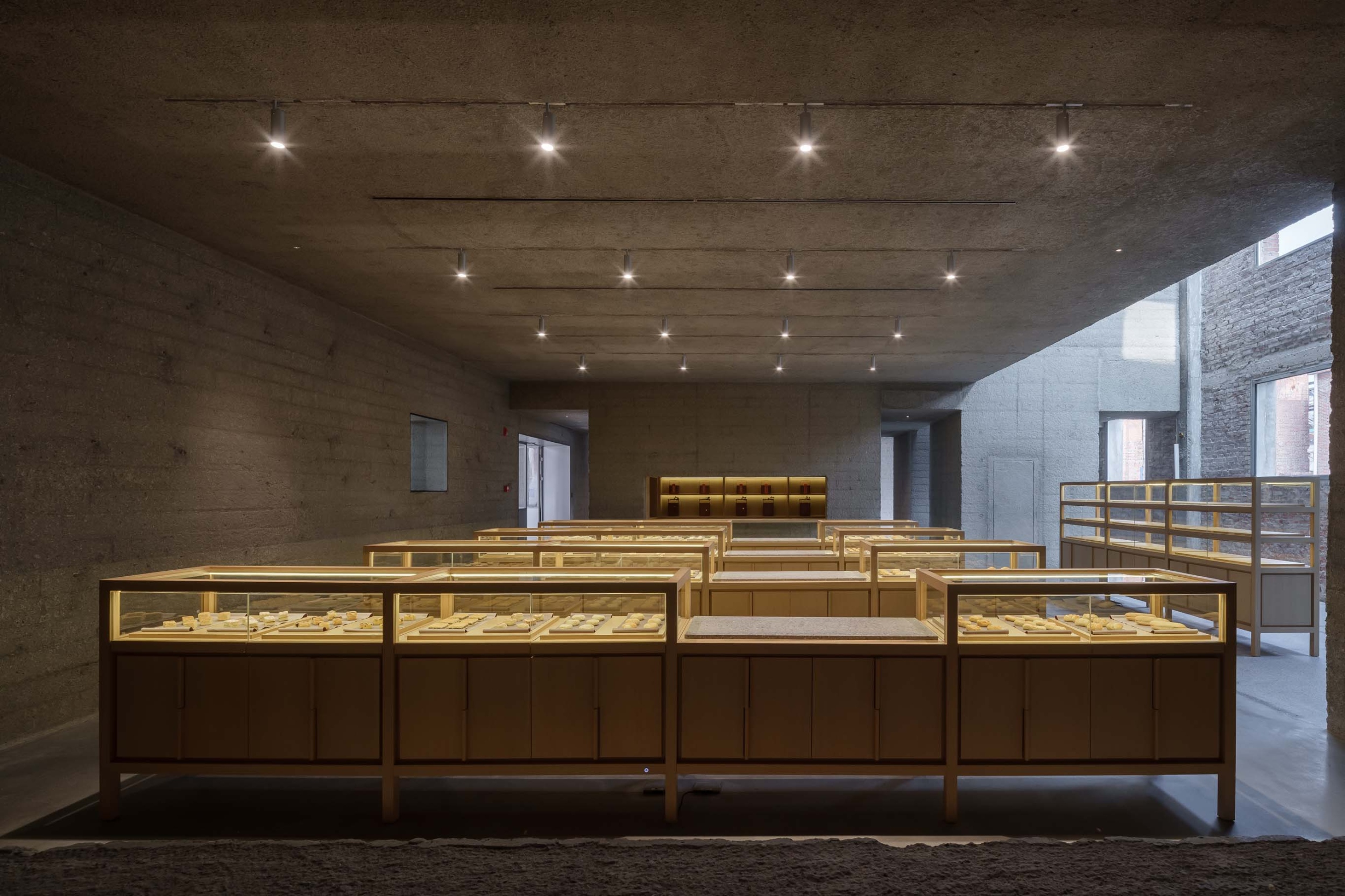Az új objektum és az eredeti héj közötti terek egy kávézó és egy többcélú előcsarnok otthonai lettek. A földszinten található a kiállítási terület, egy elegáns üzlet, a kert és a kávézó, míg a második emeleten irodák kaptak helyet. Az udvar anyagát újrahasznosított régi téglák alkotják. A raktárépület eredeti vörös téglafalait és beton szerkezeti oszlopait mind megőrizték. Felnézve látható a felújított régi tetőszerkezet a fémgerendákkal, gerendavázakkal és régi fadeszkákkal. A kör alakú nyílások egyrészt a a kör alakú süteményekre utalnak, funkcionális céljuk pedig, hogy érdekes térélményt teremtsenek a régi és az új épületrészek között, ugyanis rajtuk keresztül válik láthatóvá az eredeti tetőszerkezet. A vörös téglafalakon lévő kalligráfiák a falon talált egykori propaganda szlogenek, amelyek visszhangozzák a jelenleg zajló süteménykészítési folyamatot, illusztrálva a különböző gyártási idő és tér átfedését.