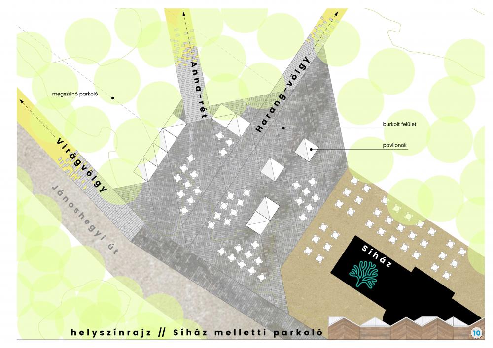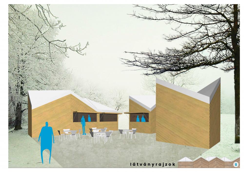 A "hóeke" és a "hófödte hegyek" hívószavak mentén összálló, rugalmasan használható pavilonrendszer jól azonosítható, saját arculatot ad a területnek, mely szelíden illeszkedik a tájba a négy évszak mindegyikében.