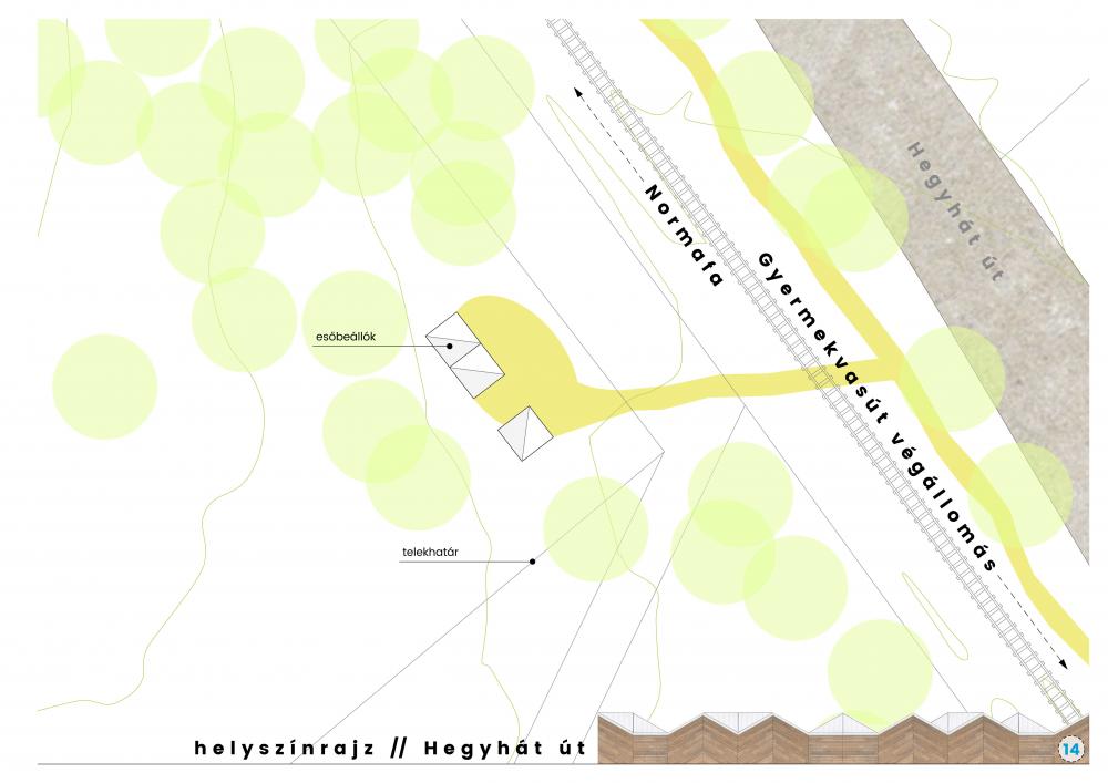 Budapestiként sokan a Normafán síeltünk életünkben először: itt tanultuk meg, hogy mi az a hóeke, itt siklottunk le először párhuzamos síléccel. Erre épül a Normafa Pavilonrendszer formavilága, a faburkolat mintázata a párhuzamos és egymással szöget bezáró sílécek formáját adja vissza.