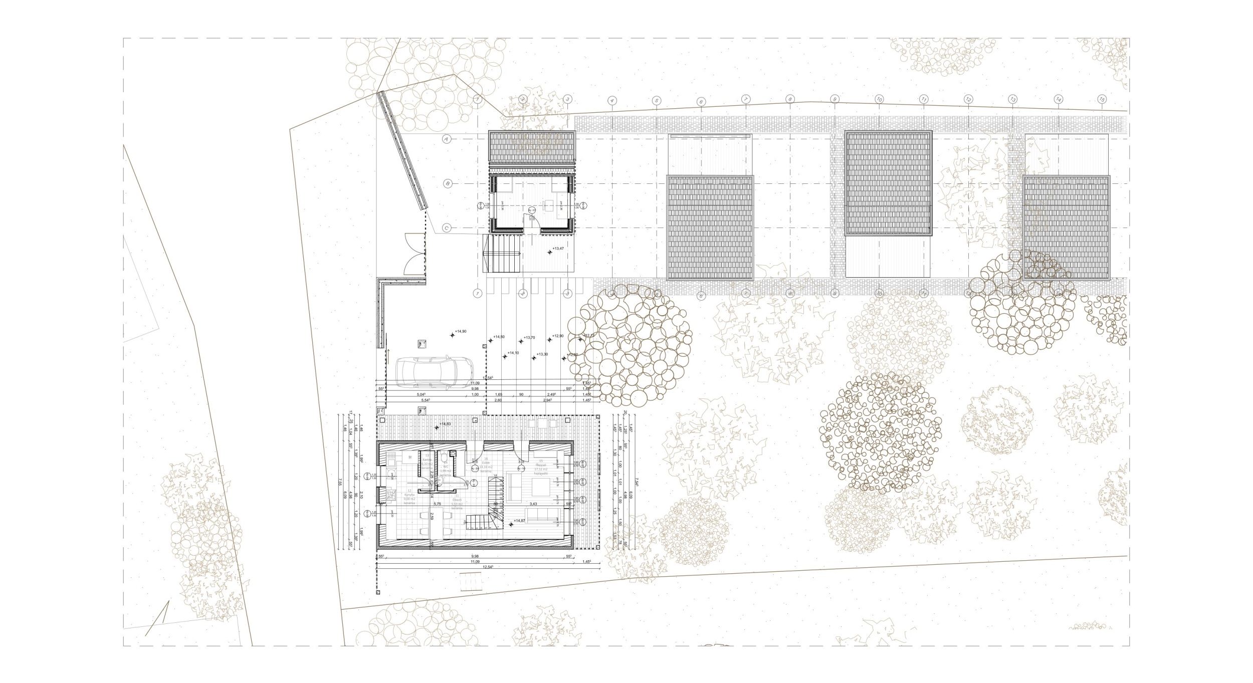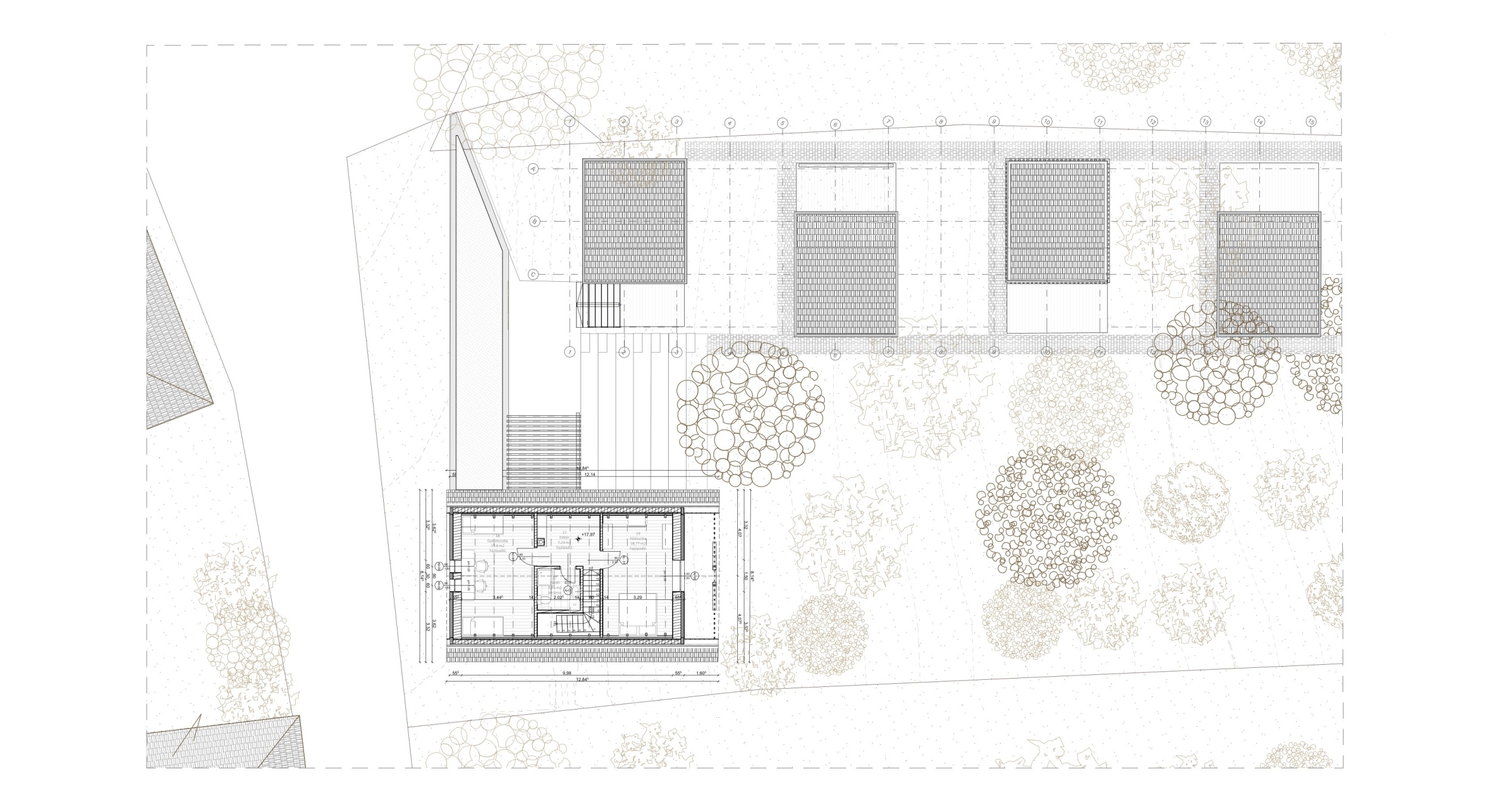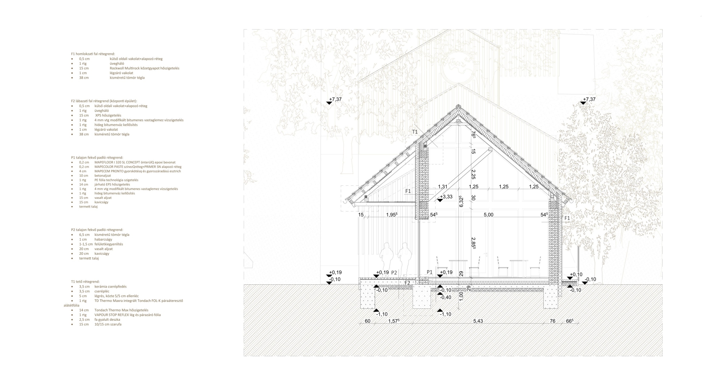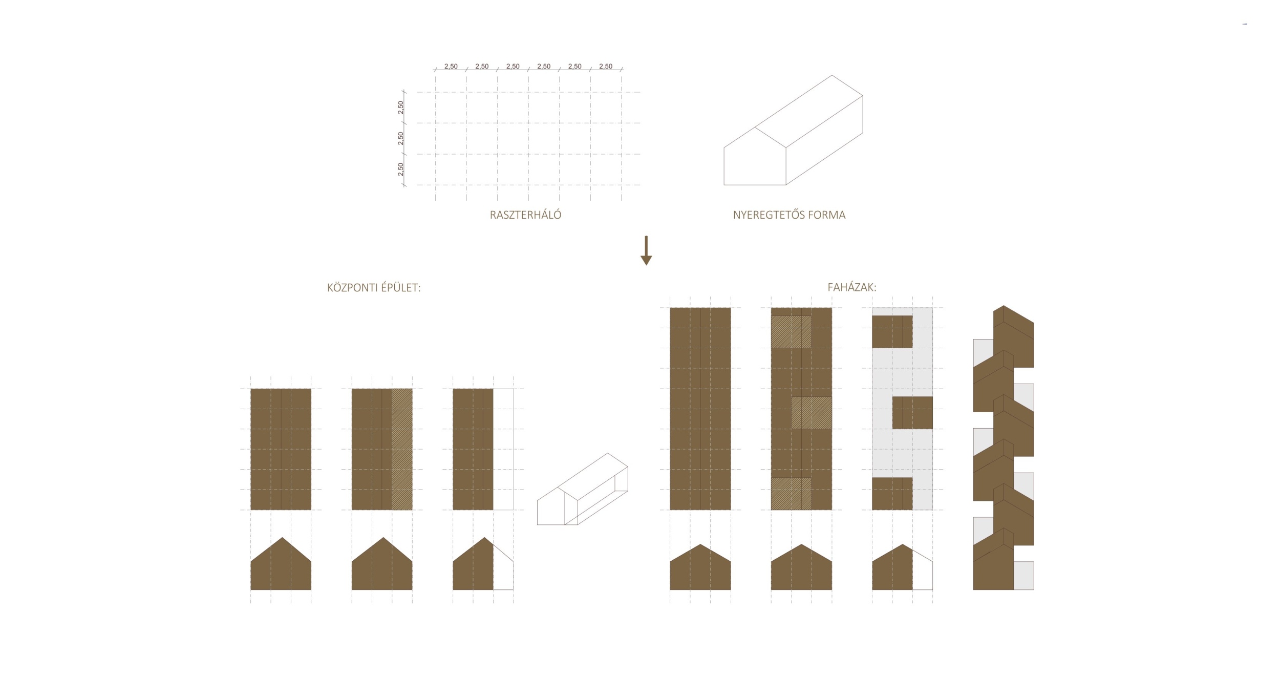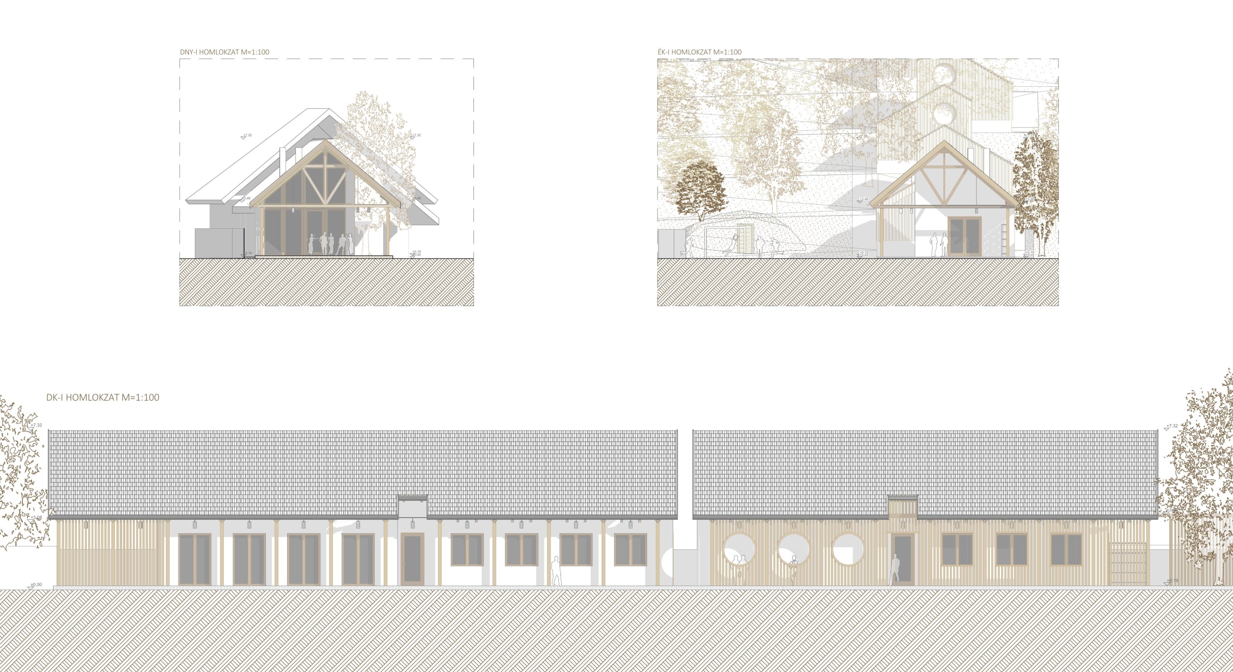 Kiemelt szempont volt a helyi építészeti arculathoz való igazodás. A falura a magastetős cserépfedésű tornácos házak a jellemzőek. Így az új épületek is ebből a formából indultak ki és egy 2,5 méteres raszterhálóra lettek felszerkesztve.