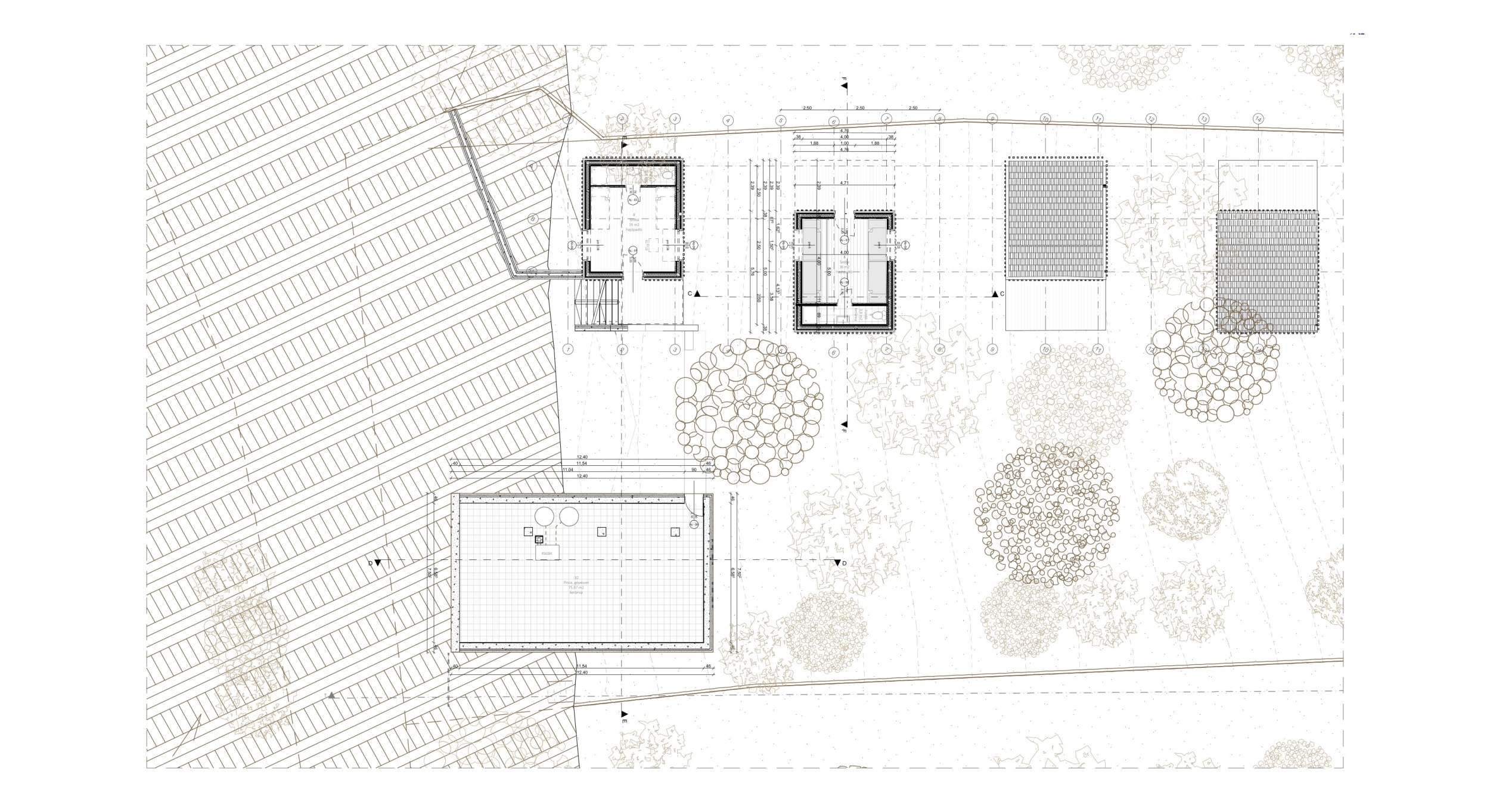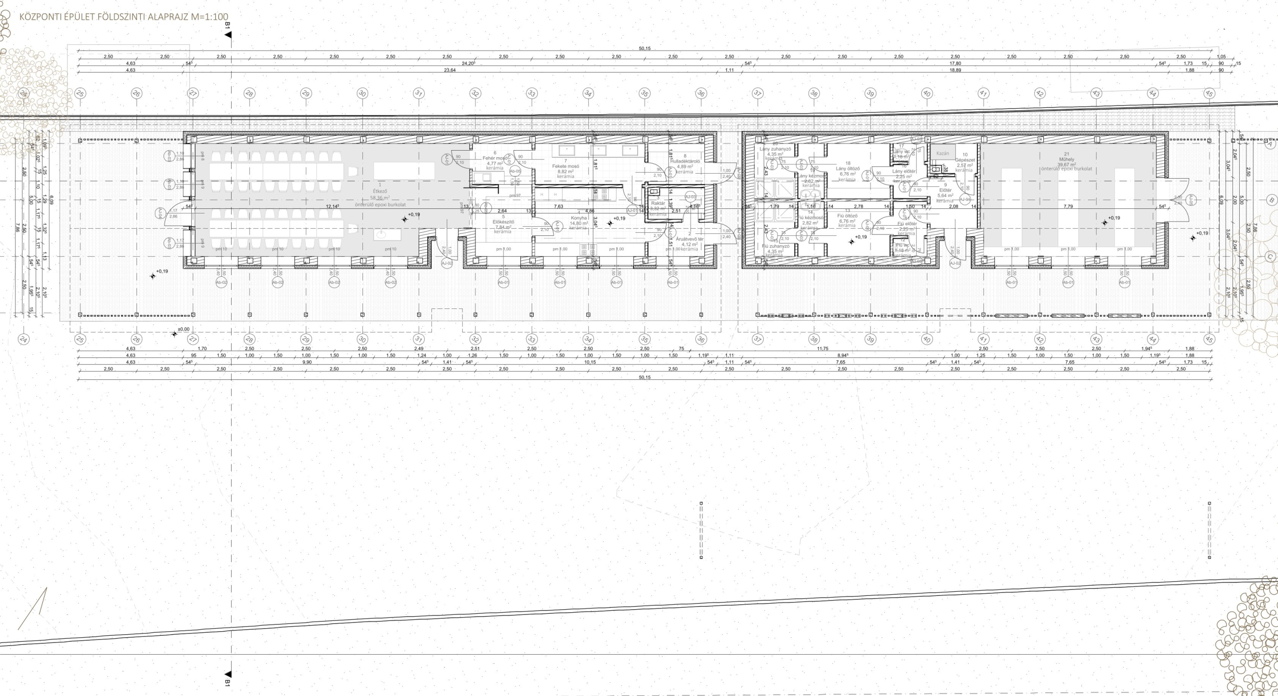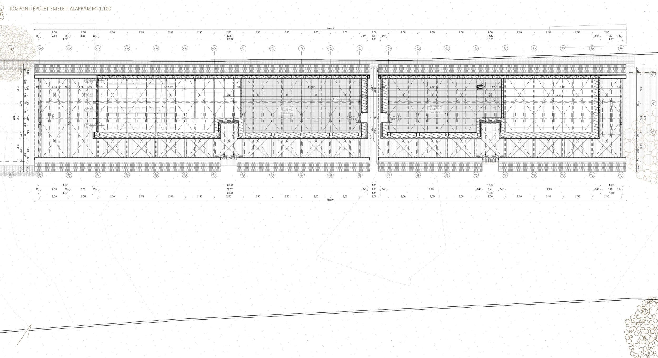 Az új létesítmény részét képezi egy központi épület, egy gondnoki lakás és az erdei iskolát alkotó faházak. A központi épület magában foglal: