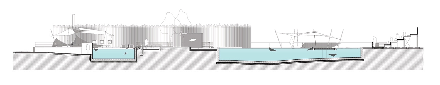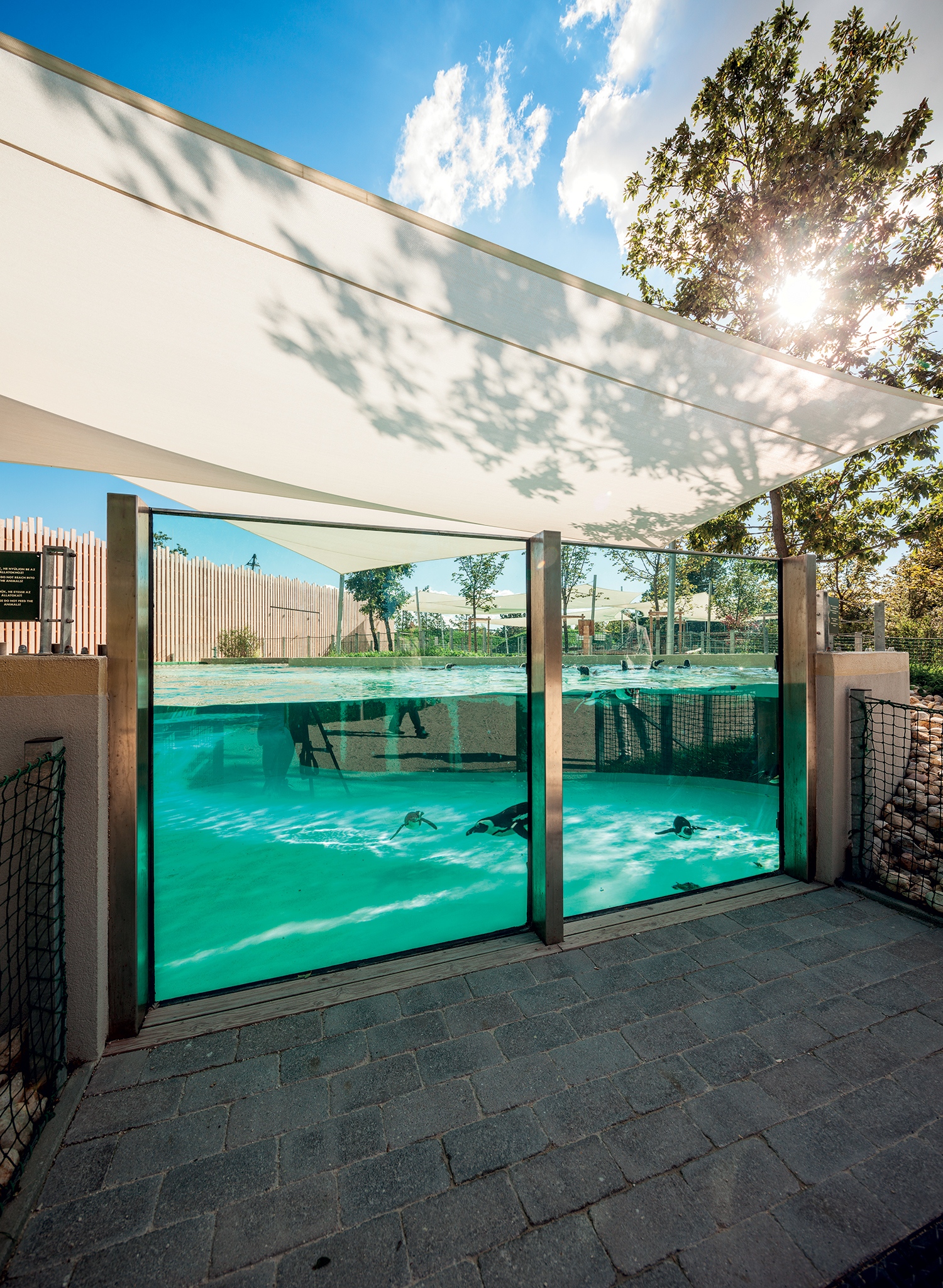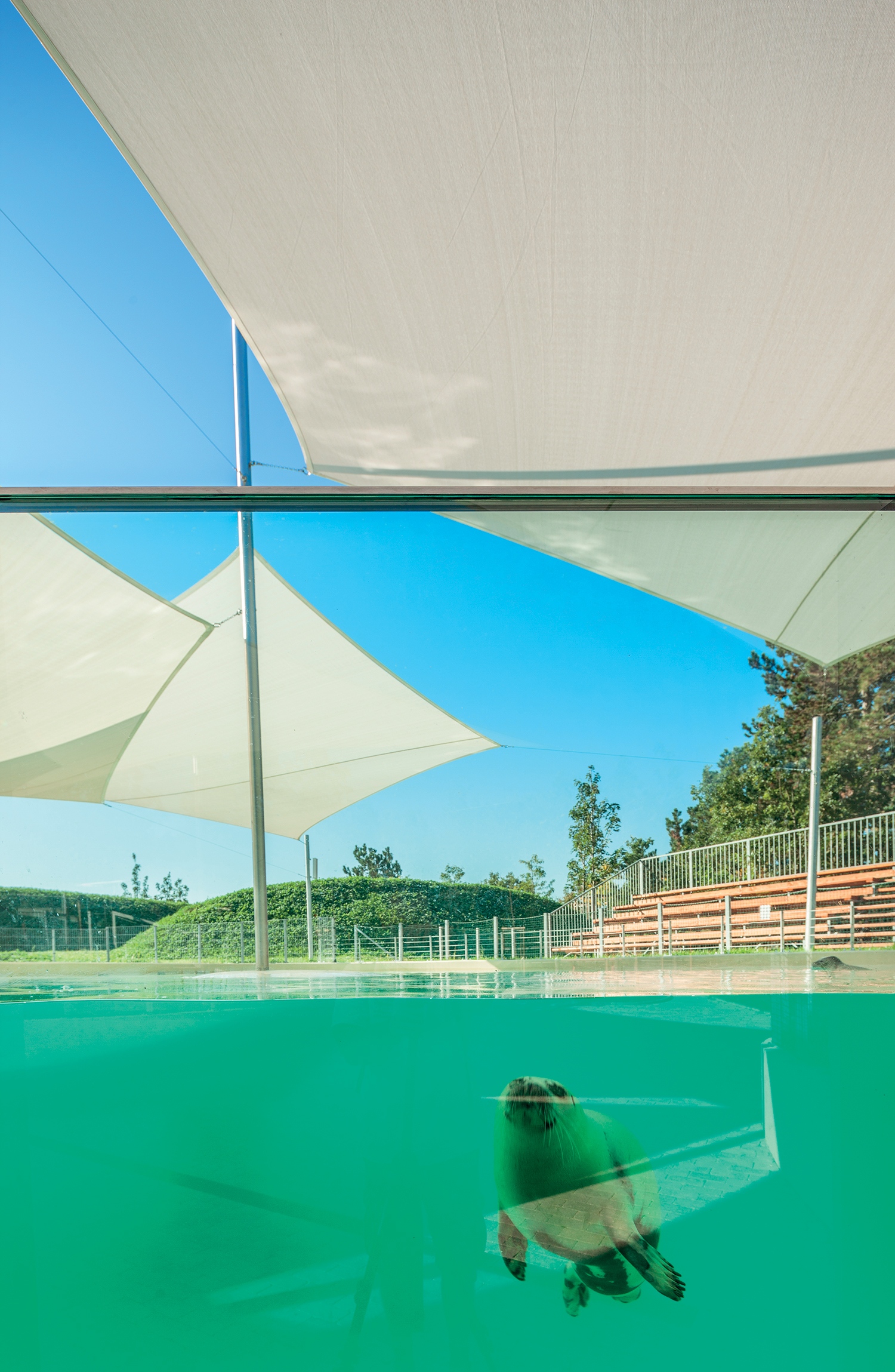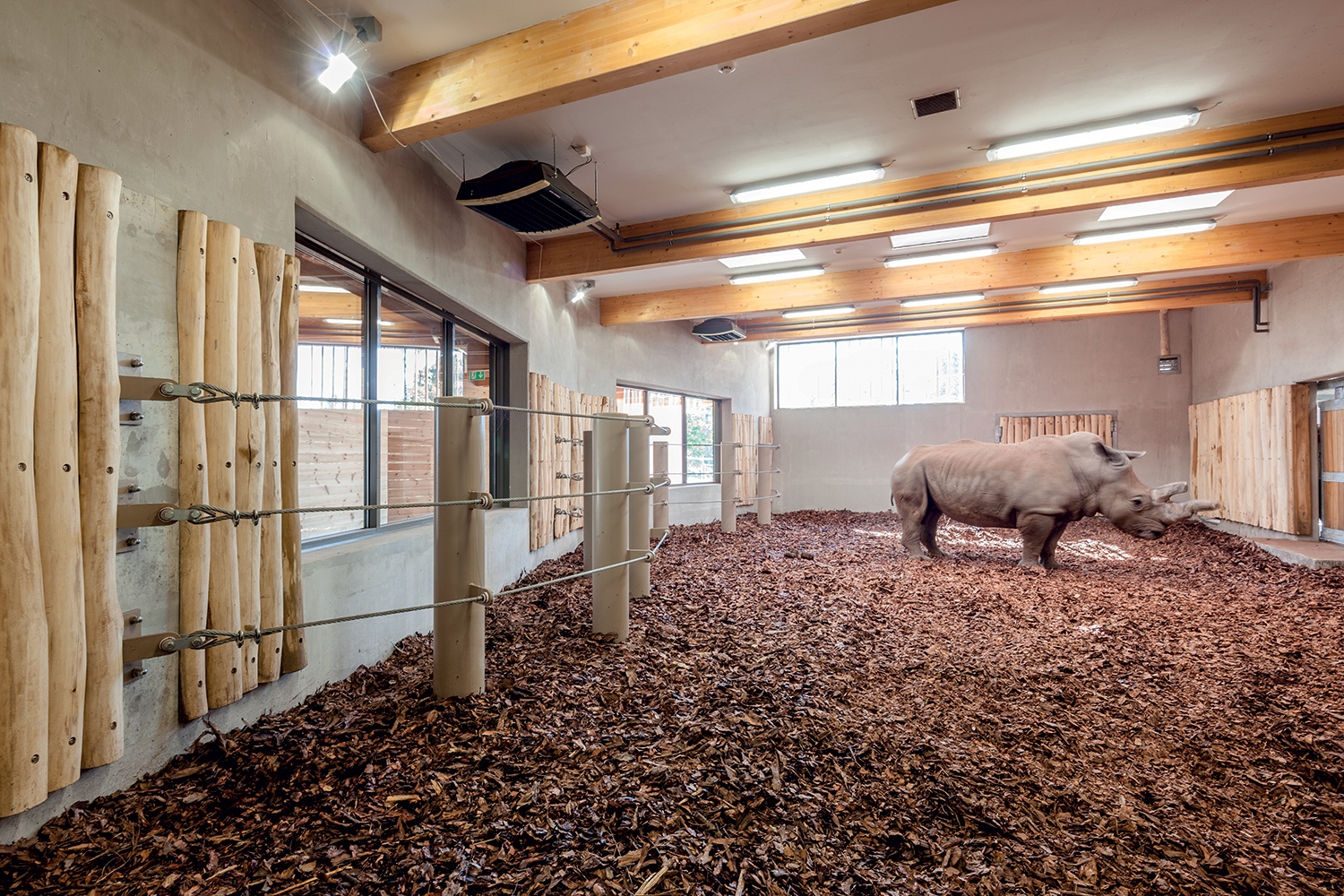 A szavannához zsilipeken keresztül kapcsolódik az orrszarvúak háza. A látogatók útvonala itt keresztezi az állatok haladási vonalát, így az állatok valódi méretét nem csupán tisztes távolról, hanem testközelből is megtapasztalhatjuk. Az itteni belső térhez illeszkedik egy elkülönített, kizárólag tülkösöknek fenntartott kifutó is. Nyugodtabb vizekre evezve, visszafelé a fókák és pingvinek medencéje mellett vezet az út. A leleményesen kialakított üvegfal előtt úszva az állatok természetes közegükben láthatóak. A medencetér formai kialakítása tudatos. A geometriának köszönhetően az állatok többször suhannak el a vízben a látogatók szeme előtt. Az egész akciót a látvány etetéssel együtt nézőtérről is csodálhatja a publikum.