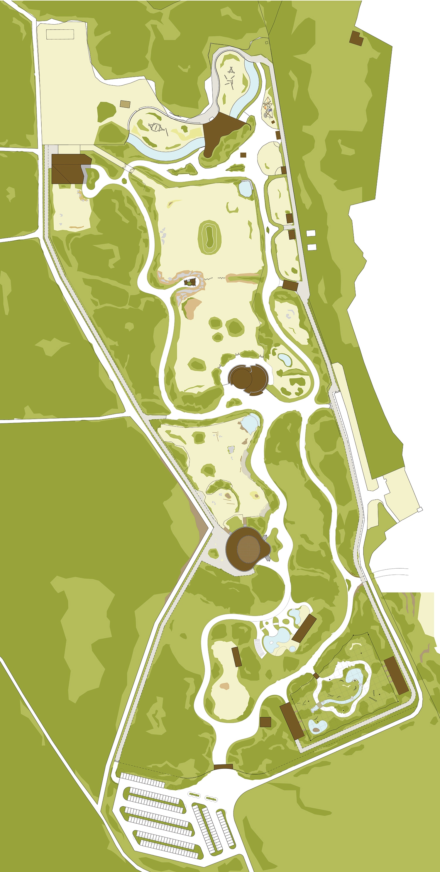 A legutóbbi nagy beruházás konzekvens módon, tudatos, a látogatói élményre építő dramaturgiával megtervezett, egymással összefüggő épületek és a hozzájuk közvetlenül kapcsolt tematikus kifutók kertje. A bejárattól indulva kigondolt természetes élménysétában vehet részt a látogató. Már a kezdetkor érzékelhető a visszafogott tervezői higgadtság, mely a későbbiek során végigkíséri utunkat. Az egyes állatfajokhoz tartozó épületek az igényeknek megfelelően, de karakterükben jól elkülönülnek. A kötelező kiszolgáló létesítmények pedig szerényen húzódnak meg, konstans minőségi hátteret biztosítva. A már messziről is látható madárházhoz Otto Frei-jellegű mérnöki, szabad röpde-tér kapcsolódik.