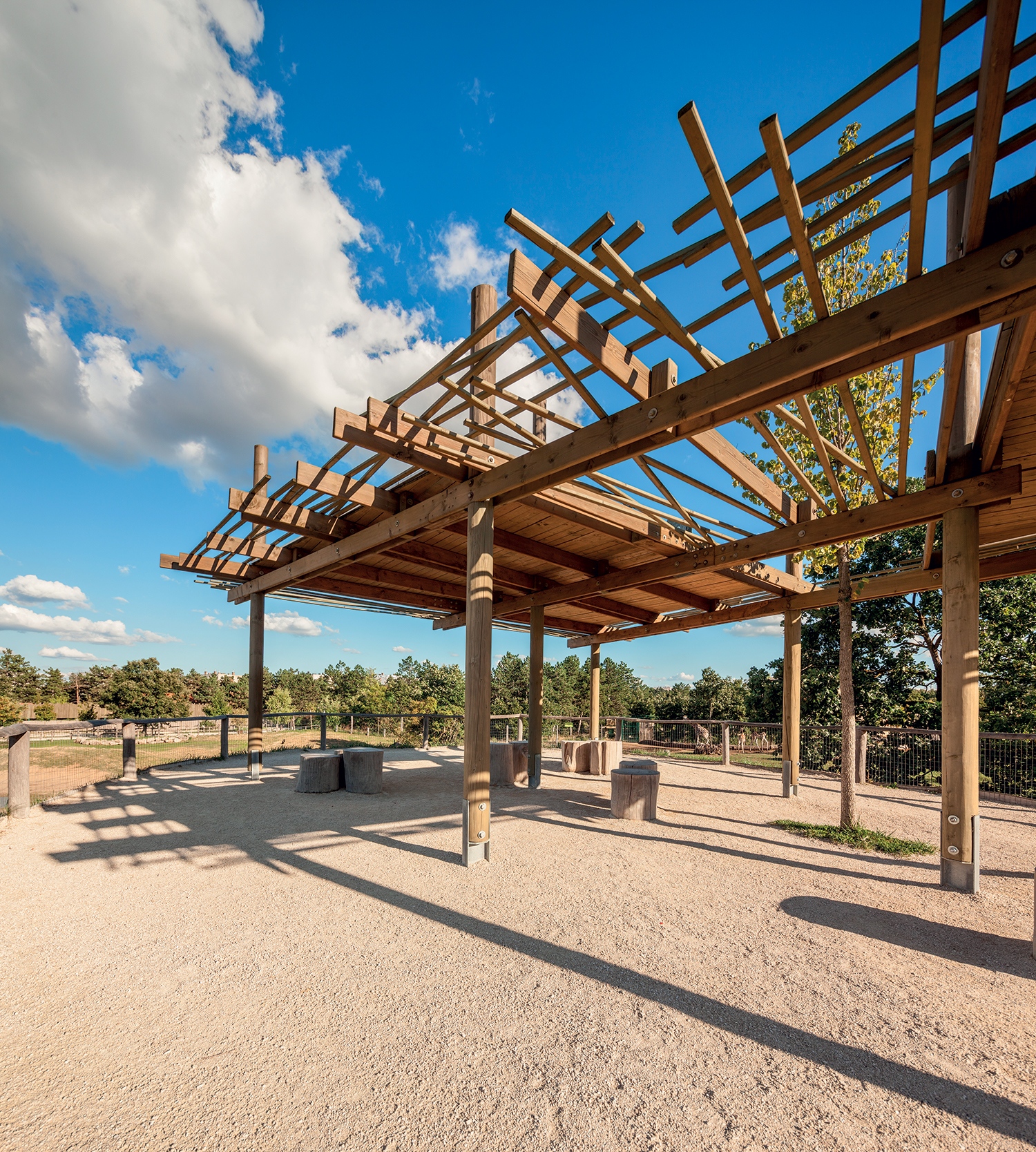 A tervező, Gaschler Gábor az összes új létesítmény telepítését és formai kialakítását az állatkert munkatársaival együttműködve szívvel-lélekkel alkotta meg. Az élménycsomagokat gondosan becsomagolva és adagolva, kerülte a látványos, öncélú, „Disneyland” jellegű építészeti allűröket. A funkcionalizmusra, biztonságtechnikára és a természetességre, amolyan minimál-animál architektúrára törekedett. A projekten átívelő közös akkord, a faburkolat számos variációban szövi be a kertet. Hol gyalult, hol nyers. Helyenként festett, másutt natúran hagyott. Itt tartószerkezet, ott burkolati elem. A technicista karám és biztonsági határoló struktúrák hidegségét a fa fényben változó melegsége mindenütt kompenzálja. Kíváncsian várom a kontrasztra épített harmónia időbeni változását.