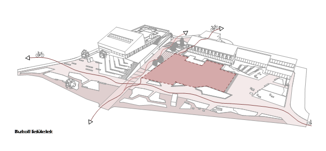 A közösségi térnek azonban olyan nagyszabású rendezvényeknek is helyet kell adnia, melyek függetlenek a két épület által befogadott állandó szolgáltatásoktól. Kulturális központtá kell válnia, mely egyben egy élénk turisztikai érdeklődésre számot tartó város központja is. Mindezek mellett egyúttal minőségi, fenntartható, a kor esztétikai és ökológiai kihívásainak a városi környezet terheléseinek is megfelelő zöldfelületekkel is kell rendelkeznie. E gondolatok azok, melyeket jelen terv a térszervezés eszközeivel a lehető legnagyobb mértékben érvényesíteni kíván.