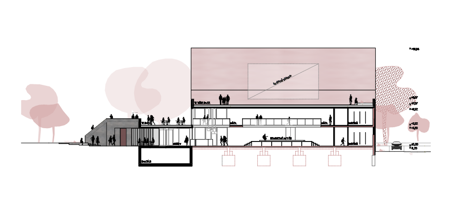 Helyiek ezer szálon kötődnek a Magyari Zoltán Művelődési Központhoz, így nem volt kérdés, hogy az építészeti karakter megőrzése a koncepciónk fontos eleme lesz. Az ikonikus tetőformán túl apróbb részletekben is visszaköszön a központ gazdag múltja. Igyekeztünk minél többet megőrizni a 60-as 70-es évek építészetéből, biztosítva a folytonosságot a városi életben. A múltban lendületet véve rohanunk a mába, az épület tömegét a földszinten bővítjük, a színháztér feletti teret pedig a próbatermek lakták be, a várra néző kivételes helyzetű terasszal.