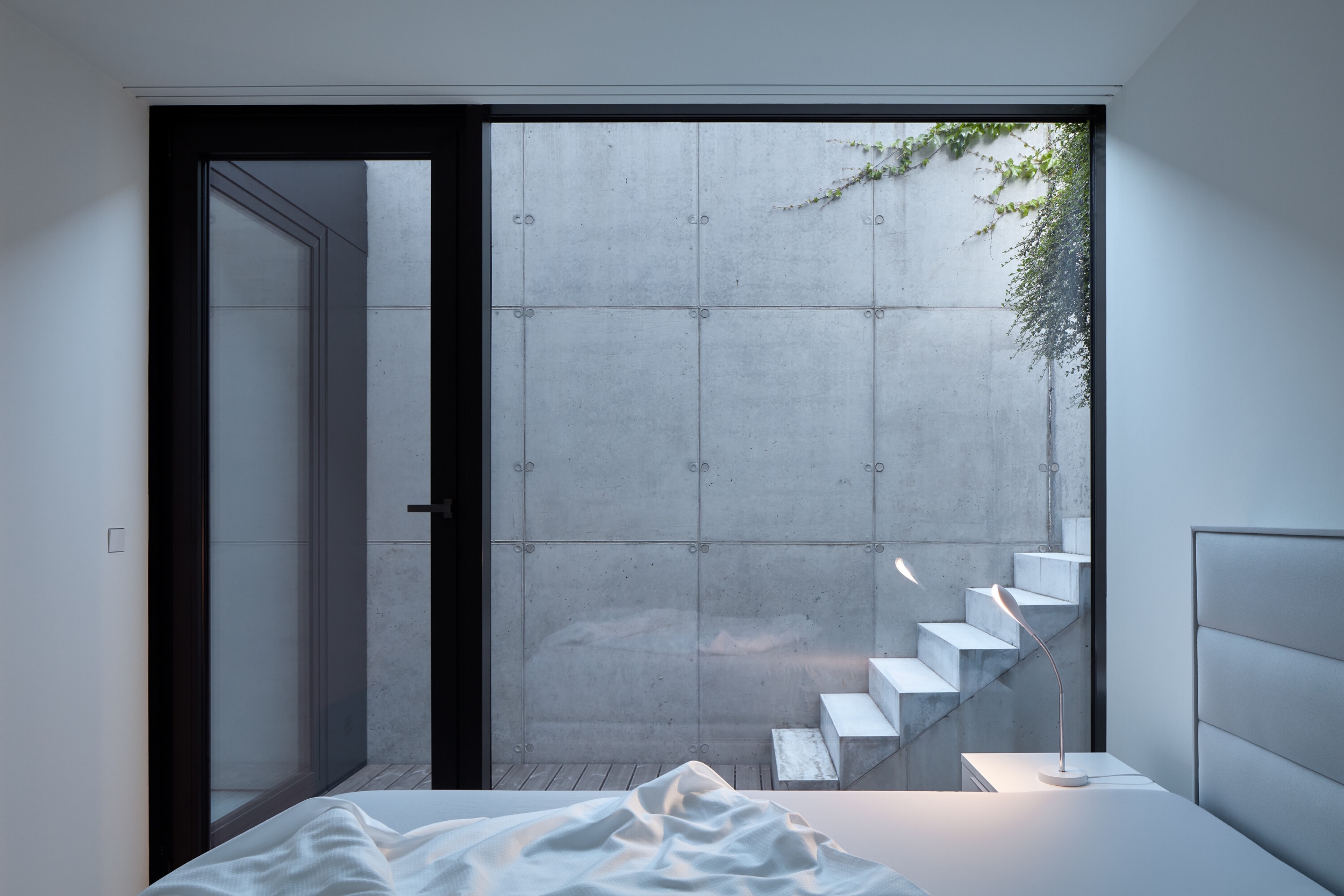A legfeleső szintre került nappali, amelyhez a déli oldalon kapcsolódik a szabadtéri terasz és a lépcsős kert, melyekre lépcsősorok vezetnek. A legfelső szint belső térrendezés előnyére vált a partíció hiánya, aminek két pozitív hozománya közül az egyik, hogy az étkező üvegfalán keresztül, a déli oldalról árad a napfény a helyiségbe, a másik oldalon, észak felé pedig lenyűgöző kilátás nyílik a Dyje folyó völgyére, a szemközti sziklás lejtőkre és Znojmo történelmi emlékeire.