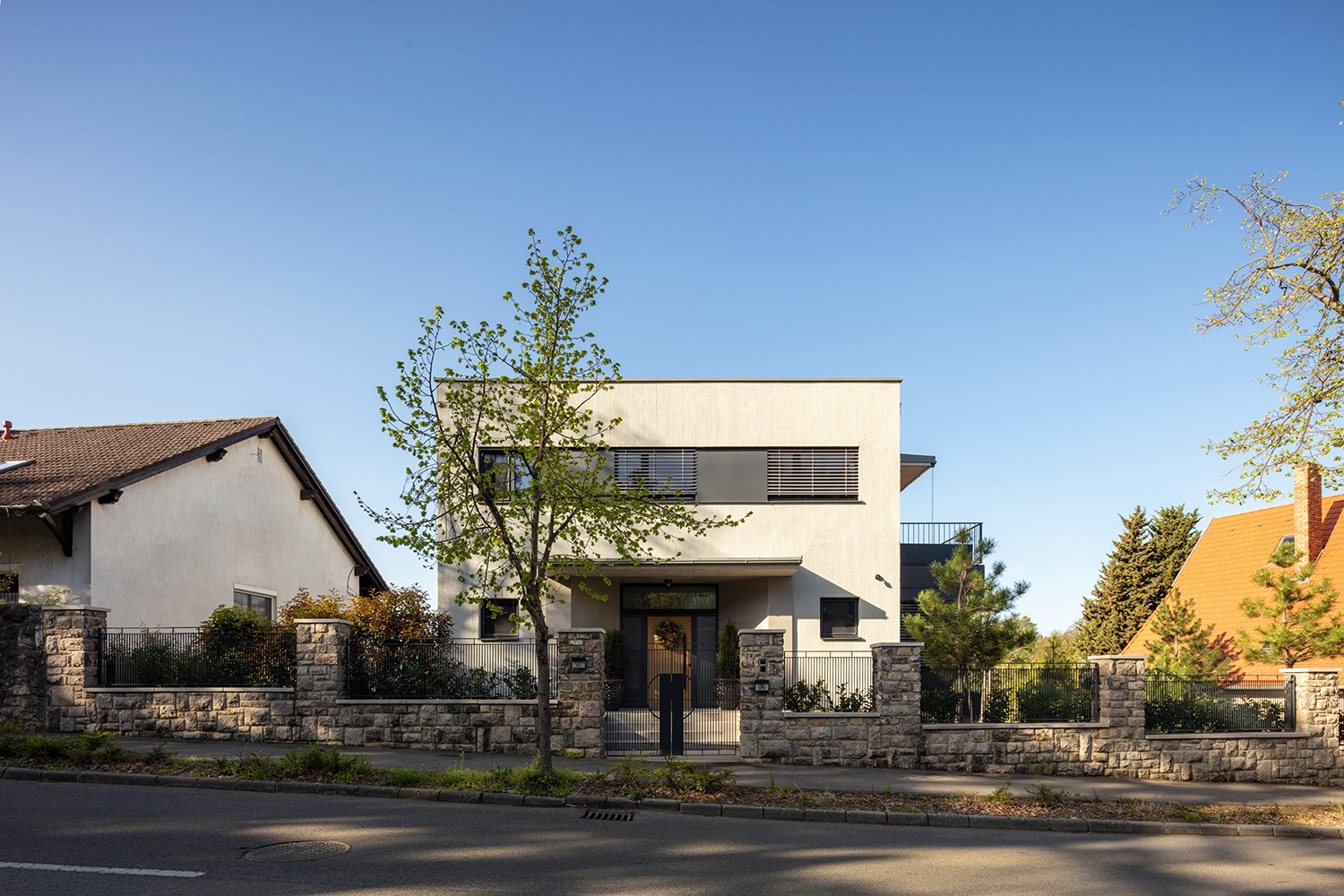 Ahogy a pécsi modern villaépítészet szelleme a helyi építészek feje fölött lebeg emlékeztetőül, úgy nehezedik is a vállukra. Ez a projekt méltón, kortárs módon próbálja továbbörökíteni a szellemiséget; azt hiszem, sikerrel. Nem csak tiszteletben tartja a múlt század építészetét, de letisztult arányaival és anyaghasználatával reflektál is arra, finom eszközökkel újraértelmezve annak értékeit.