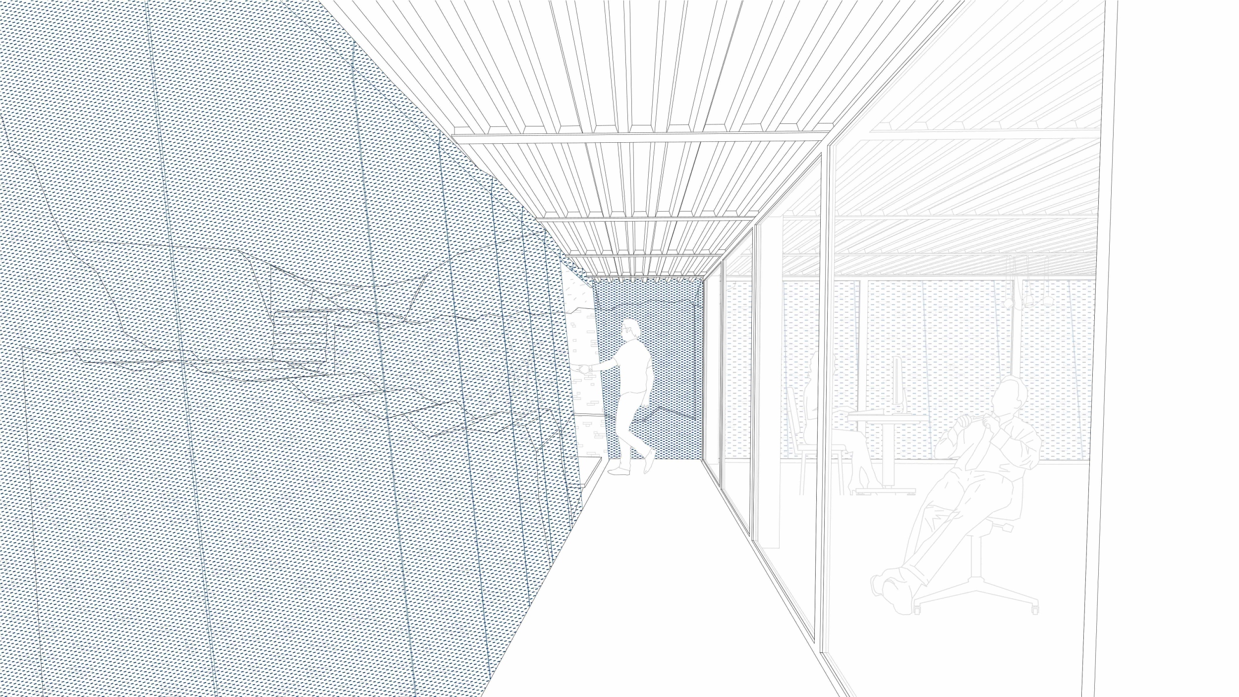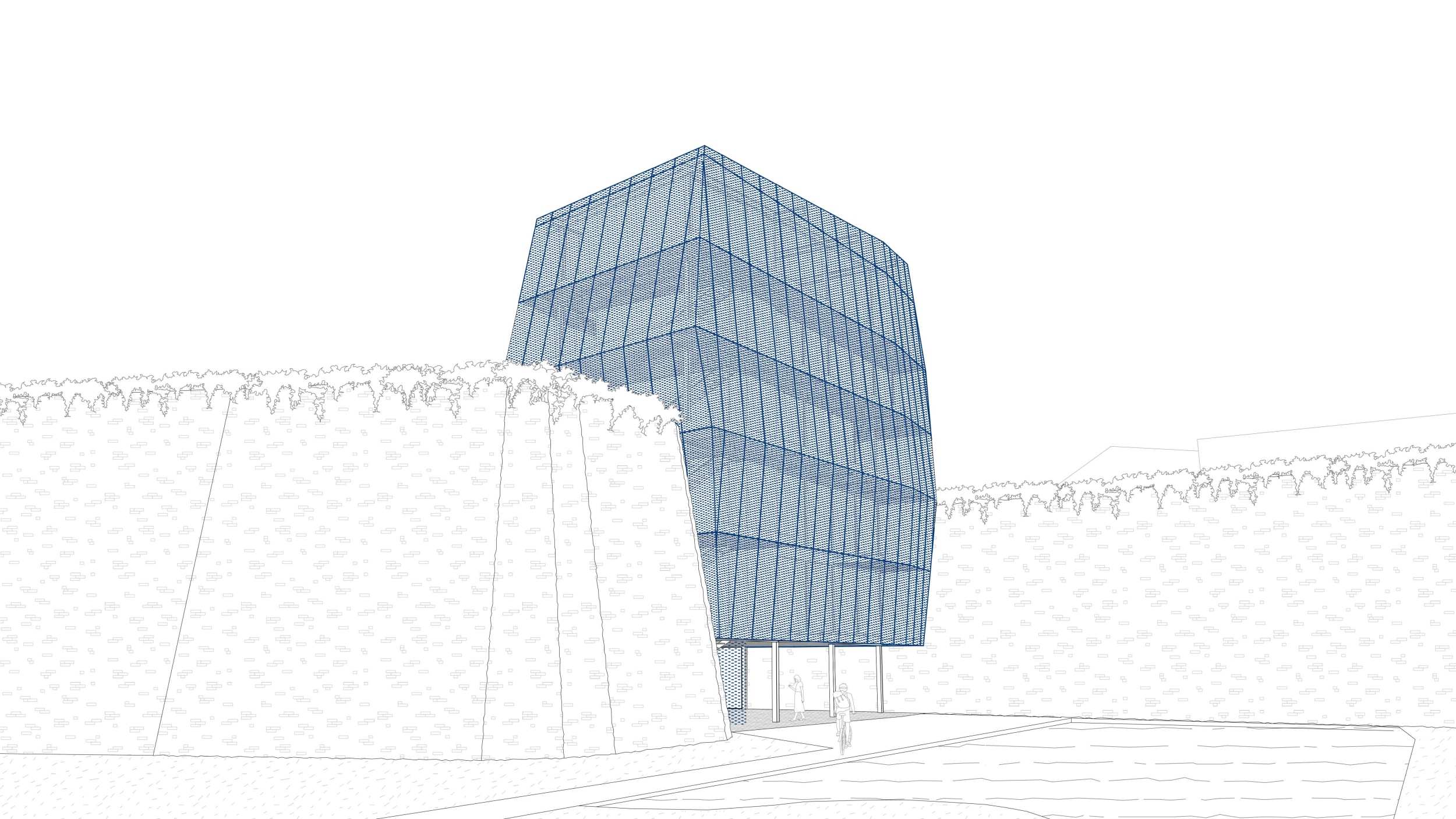 Az általam tervezett épület a nagyváradi vár egyik újolasz bástyájának elhagyatott öblében kap helyet, célja a vár városi életbe való integrálása. Két fő funkciót lát el: civil kezdeményezések számára biztosít irodai teret, valamint helyet ad közösségi eseményeknek. A funkciók vertikálisan elkülönülnek, a kapcsolatukat tágas, fedett-nyitott közlekedők segítik, melyek találkozási pontként is szolgálnak. Az acél pillérvázas épület perforált homlokzattal szoborként jelenik meg, párhuzamot vonva a várfal monumentalitásával és tömegével, miközben anyaghasználatával és formájával kontrasztot képez. Ez a radikális és karakteres beavatkozás szándékosan jelzi a szemléletmódbeli váltást.