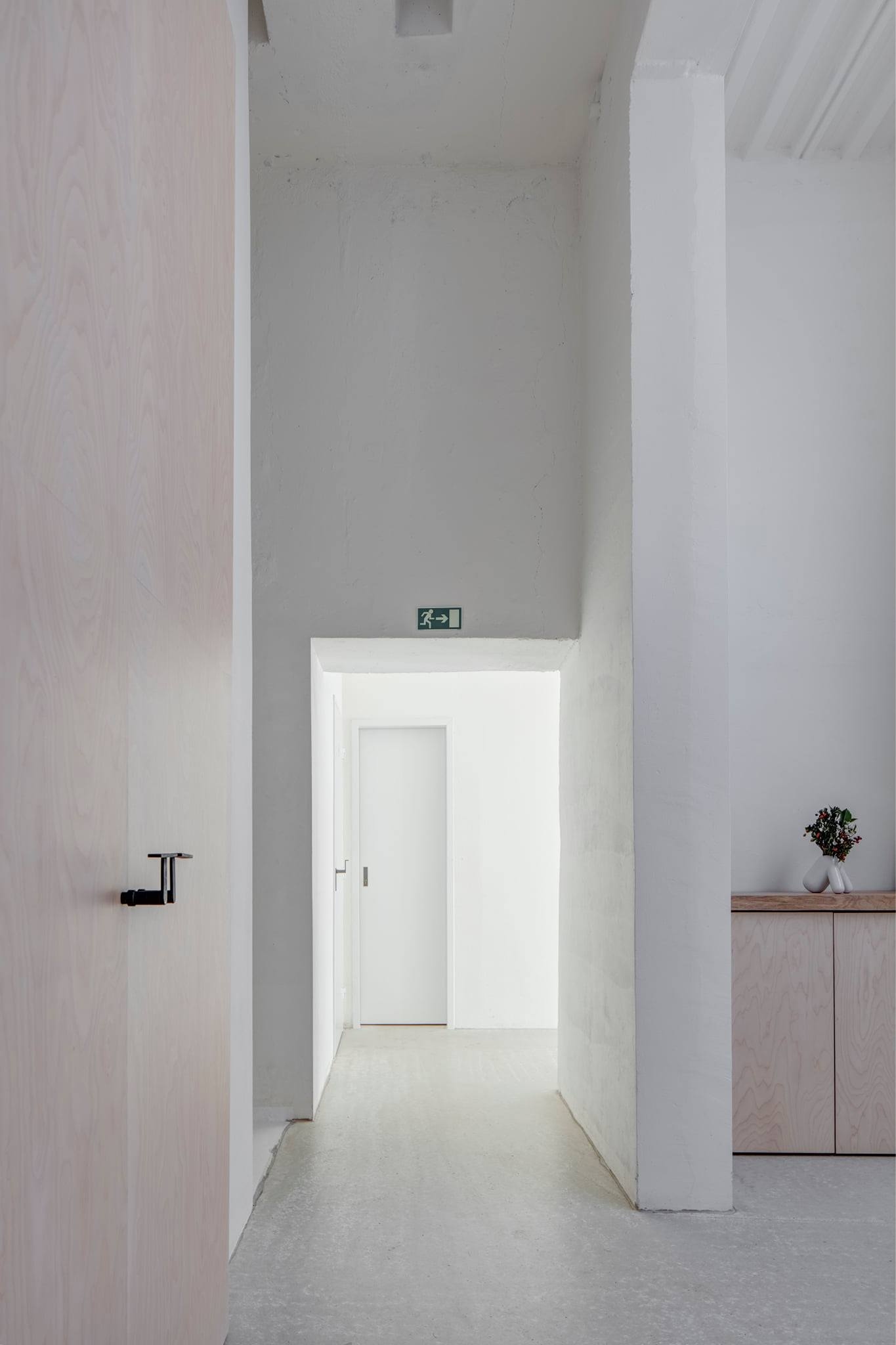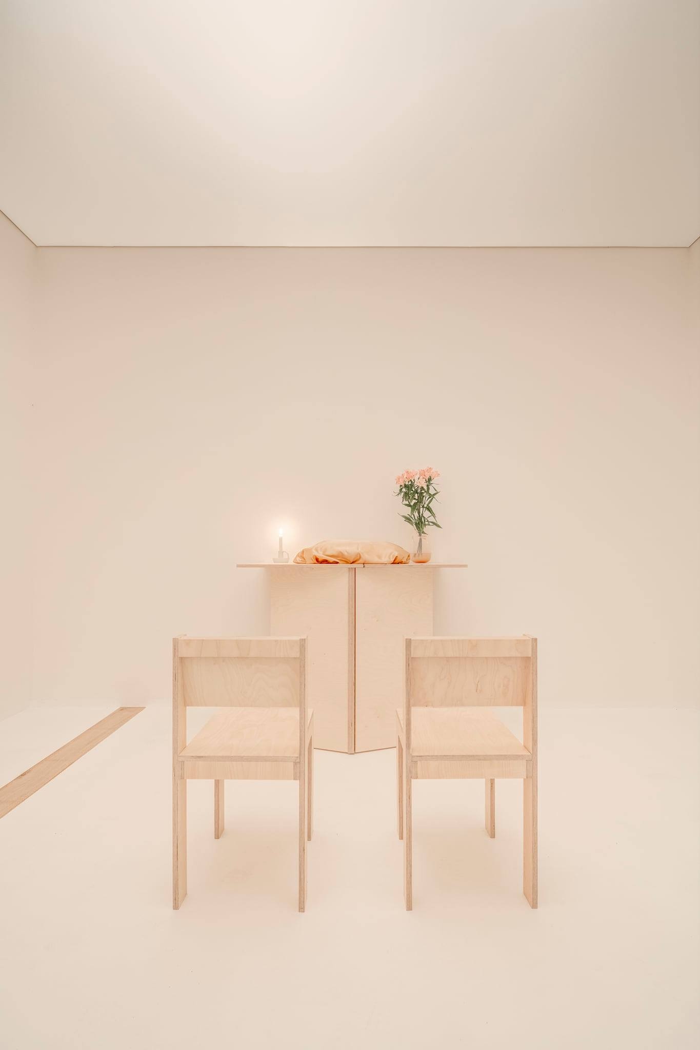 A látogatók az oldalsó ajtón keresztül jutnak az előtérbe, ahol mindössze egy fa pad található. Innen egy üvegajtón keresztül betekintés nyílik az irodába. A központi terem, ahol elbúcsúzhatunk házi kedvencünktől, egy egyszerű, négyzet alakú szoba, fa ajtókkal, minimális berendezéssel. A technikai létesítmények külön bejárattal rendelkeznek, és el vannak különítve a látogatóktól, az épület hátsó részeiben. Az épület belső és külső falai mind vakolt betontömbökből állnak, a belső terek falait fehérre meszelték, amik a főleg fából készült, minimális bútorzattal kiegészülve, nagyon nyugodt, egyszerű tereket hoznak létre.