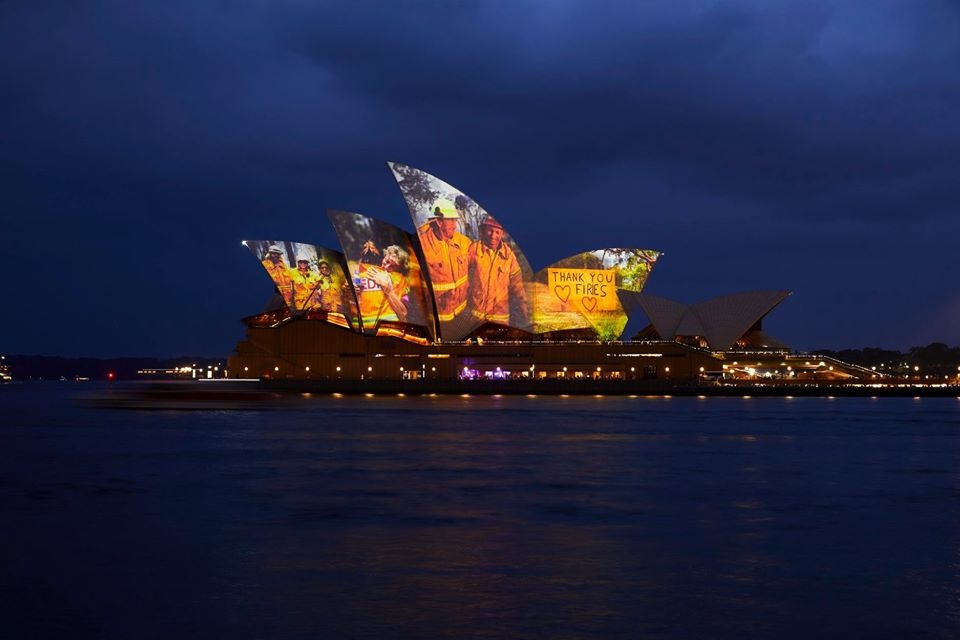 Megható gesztussal emlékezett meg a Sydney-i Operaház az ausztrál tűzvész károsultjairól és az oltást segítőkről: január 11-én kivilágították az épületet, hogy így fejezzék ki szolidaritásukat az érintettekkel, illetve hogy megköszönjék az oltásban részt vevő mentőegységek és az önkéntesek munkáját. A vitorlákon megjelenített képeken egymást átölelő tűzoltók és egy kézzel készített tábla látható, "Köszönjük, tűzoltók!" felirattal.