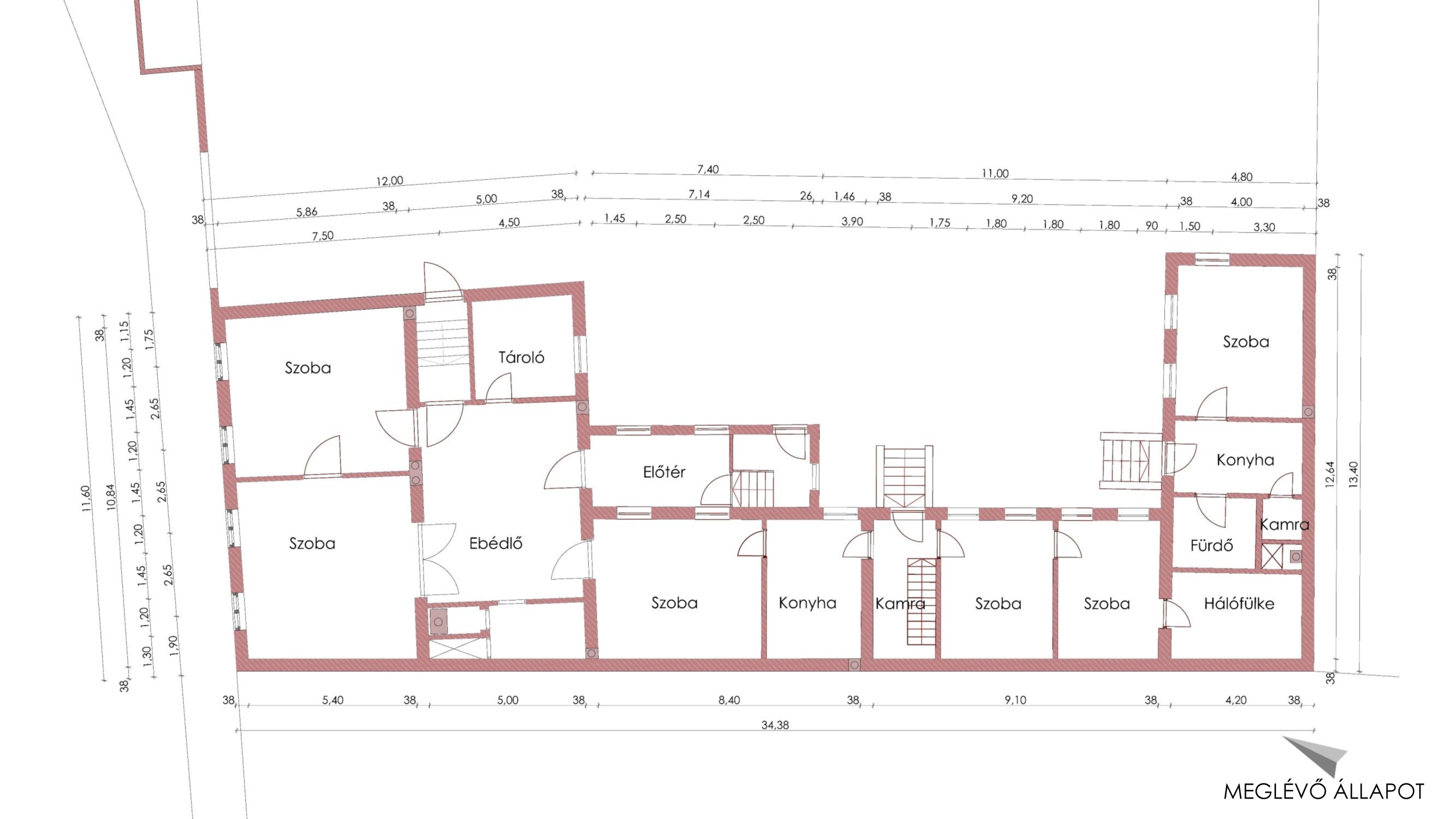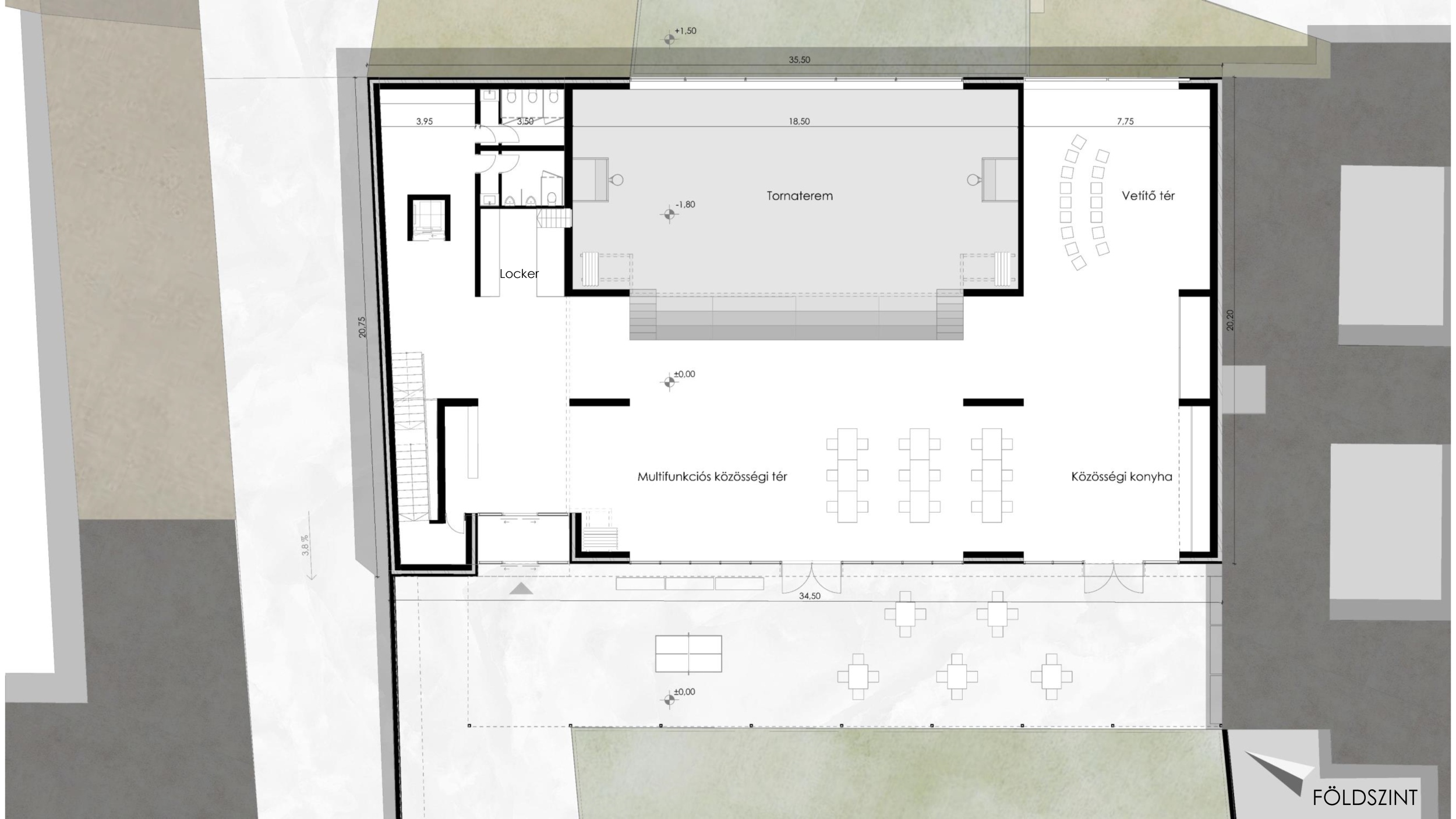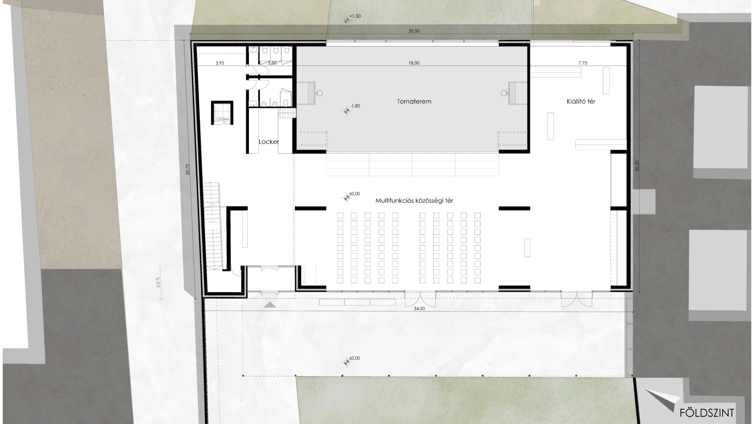 A régi és az új viszonya elkülönülten jelenik meg, egyfajta tiszteletet adva a cívisháznak. A meglévő földszintes épület több lakóegység egymás után sorolását mutatja. A belső válaszfalak elbontásával nagyobb összefüggő tereket jönnek létre, így az utcafront felől könyvtárként, míg a kert hátsó része felől közösségi imateremként alakul át a térsor.