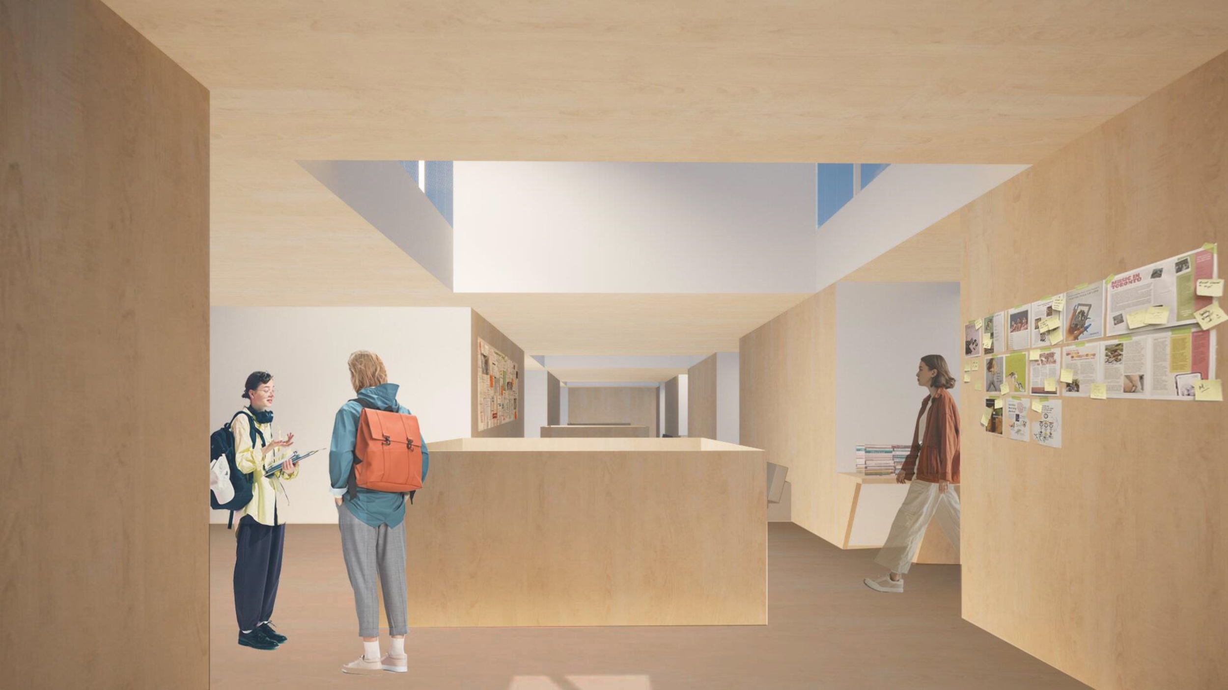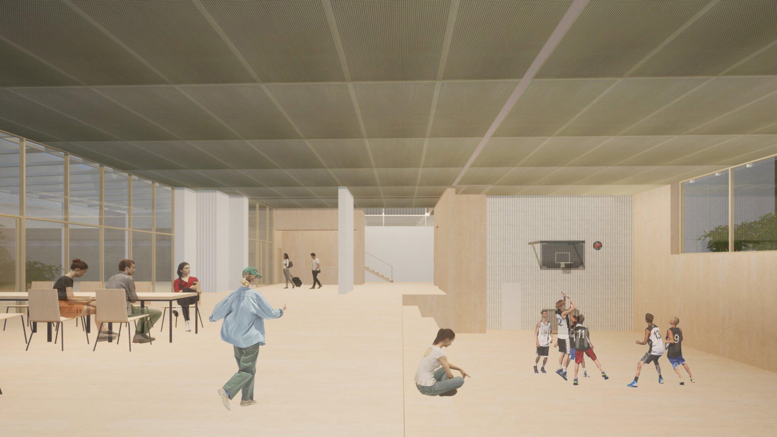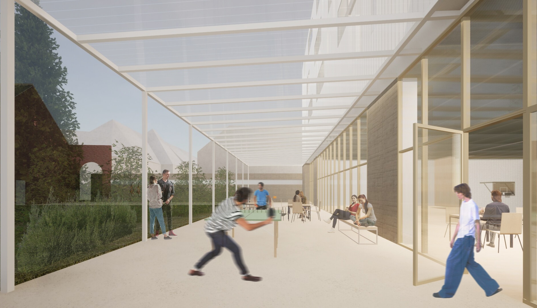 A szobákat a közösségi tér szövi át, mely egy kiterjesztett nappali, ez ad teret a két korcsoport találkozására és a mentorálásra, közös tanulásra vagy pihenésre. A közösségi átjáró kifejezés – a tömbrehabilitáción túl – a kollégium belső működésére is igaz. A tervben a rétegek közötti kapcsolódás így a diákok között és az építészeti oldal felől is megjelenik.